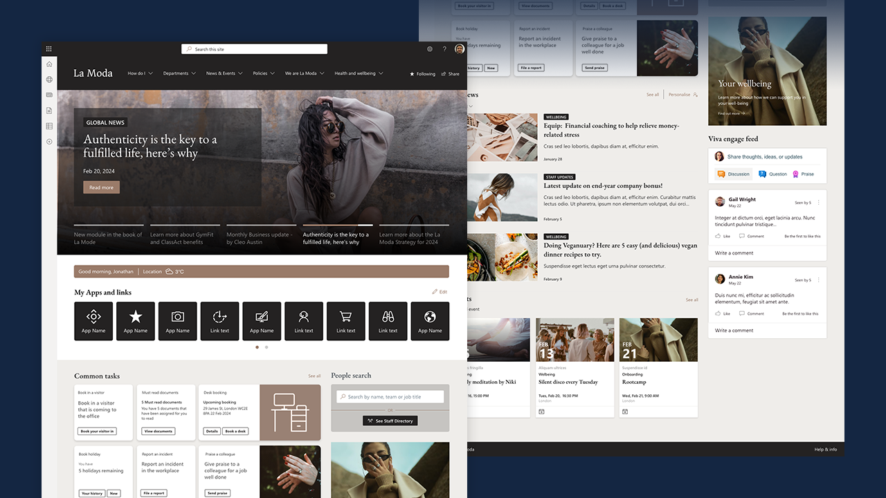 - Erhöhte Markteinführungsgeschwindigkeit: Starten Sie schnell ein leistungsstarkes, best-practice Intranet-Erlebnis auf Microsoft 365 mit vorgefertigten SharePoint-Intranet-Vorlagen und Funktionen.
