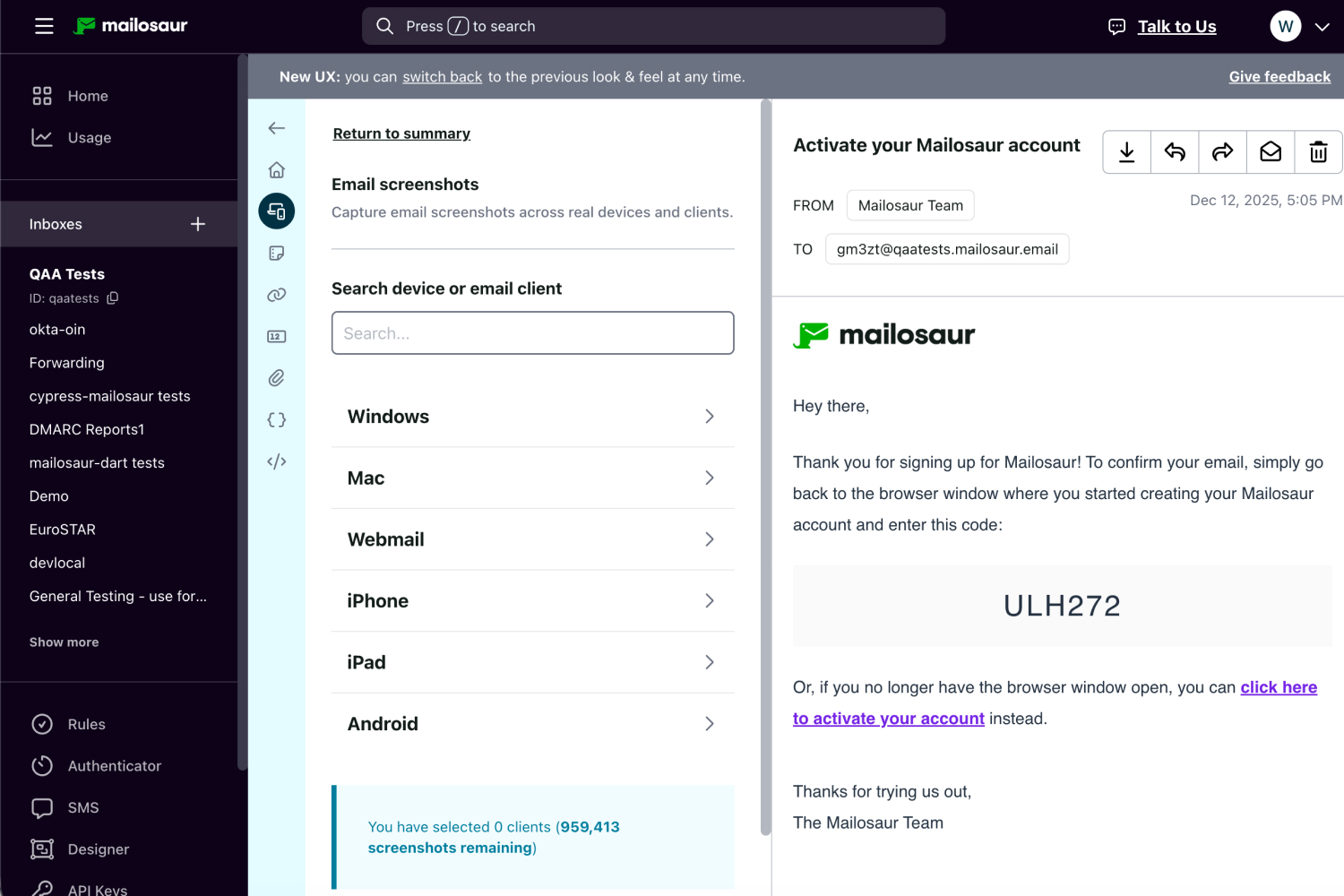 Was mir auffällt, ist die Effektivität und Einfachheit. Wir haben mit verschiedenen Tools für die Bearbeitung von E-Mails in der Testautomatisierung experimentiert, insbesondere für OTPs und 2FA, und Mailosaur war durchweg am einfachsten zu verwenden – es funktioniert einfach. Ich schätze auch das großzügige Testprogramm, das es einfach macht, einen funktionalen Proof of Concept zu erstellen. Dies wiederum lässt sich leicht dem Team und dem Management zur endgültigen Genehmigung präsentieren. Ich mag auch die Python-Bibliothek, die hilfreiche Methoden zum Extrahieren der Codes und Links bietet, ohne die E-Mail-Struktur manuell parsen zu müssen. Bewertung gesammelt von und auf G2.com gehostet.