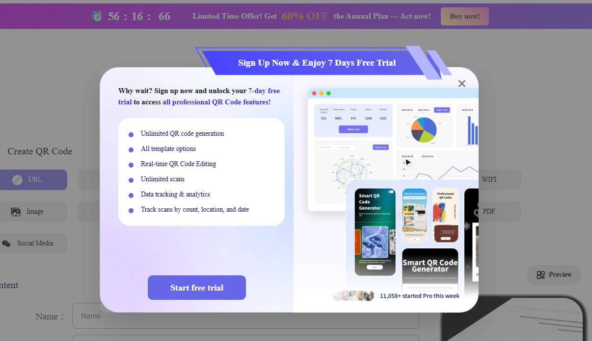 Erstellen Sie vollständig angepasste QR-Codes mit Farbe und Form, Logo und verfolgen Sie, wie viele Personen Ihre QR-Codes scannen. Unsere QR-Code-Plattform bietet umfassende Analysen und Landingpages, um die Konversionen für Ihr Unternehmen zu steigern.