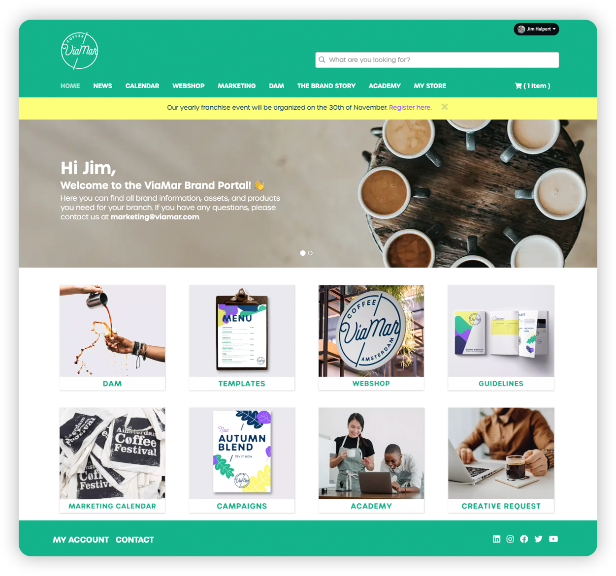 Im Gegensatz zu Plattformen, die Sie zwingen, sich an ihre Workflows anzupassen, agiert Marvia als echte Partnerschaft. Die Plattform ist modular, beginnen Sie mit dem, was Sie benötigen (Markenvorlagen, DAM, Markenrichtlinien, Marketing-Shop, Marketingkalender oder Social Campaigns) und skalieren Sie, während Sie wachsen. White-Label-Anpassungen sorgen dafür, dass sich die Erfahrung nativer für Ihre Marke anfühlt, und das Customer Success Team arbeitet zusammen, um Lösungen zu entwerfen, die zu Ihren spezifischen Workflows passen und die Akzeptanz bei Franchise-Nehmern fördern.
