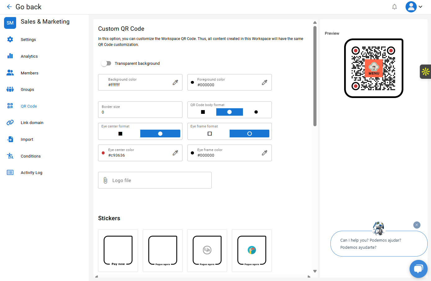 Erstellen Sie vollständig angepasste QR-Codes mit Farbe und Form, Logo und verfolgen Sie, wie viele Personen Ihre QR-Codes scannen. Unsere QR-Code-Plattform bietet umfassende Analysen und Landingpages, um die Konversionen für Ihr Unternehmen zu steigern.