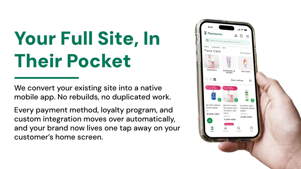 Wir brauchten eine Möglichkeit, unseren Shopify-Store in eine App zu verwandeln, aber wir waren auf mehrere Drittanbieter-Apps angewiesen, um bestimmte Funktionen zu erreichen. Die meisten Plattformen, die MobiLoud ähneln, konnten den vollständigen Code nicht übertragen oder komplexe Integrationen unterstützen.