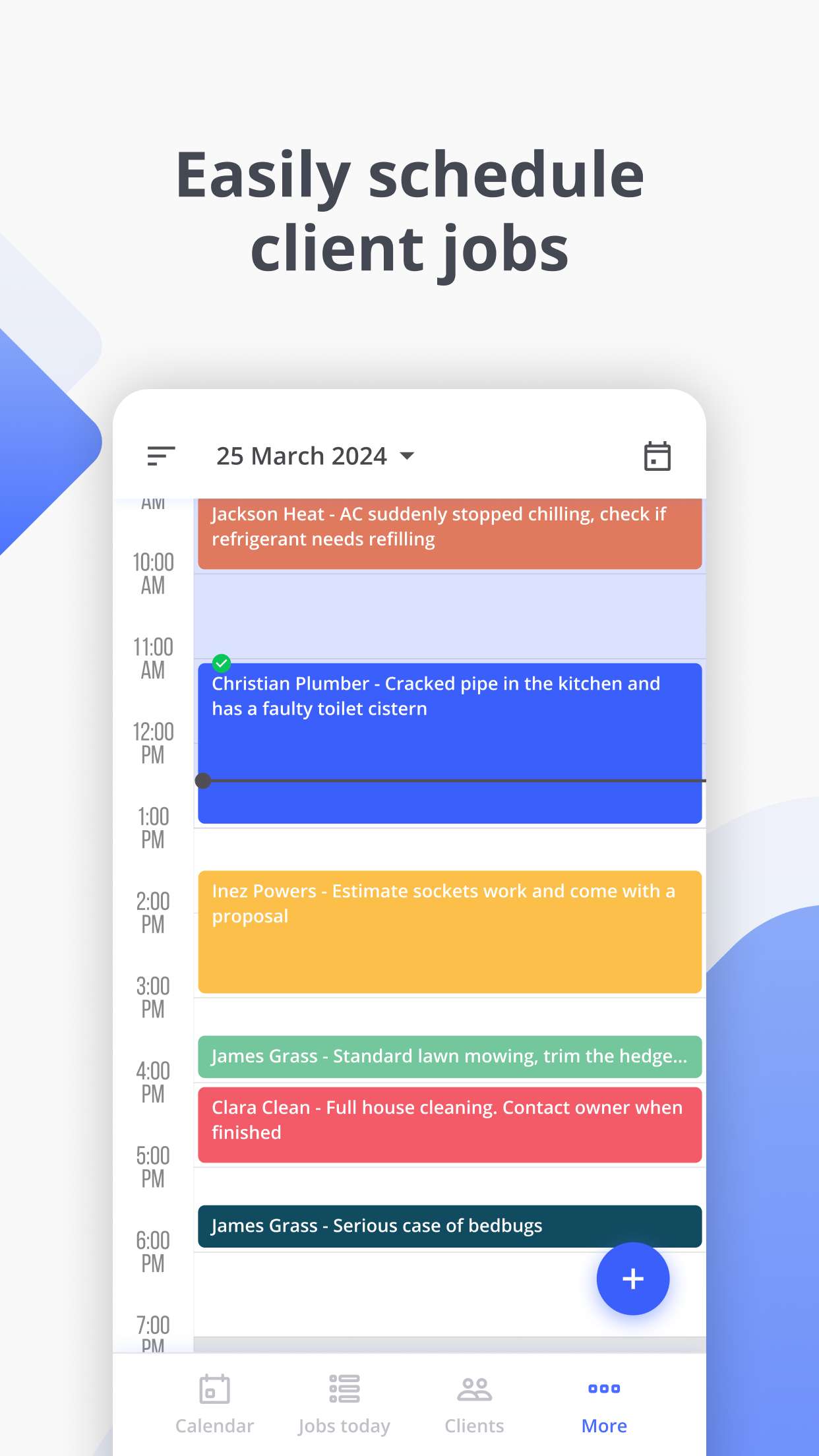 Kundenmanagement, Terminplanung und Rechnungssoftware ohne Schnickschnack für Außendienstleistungen.