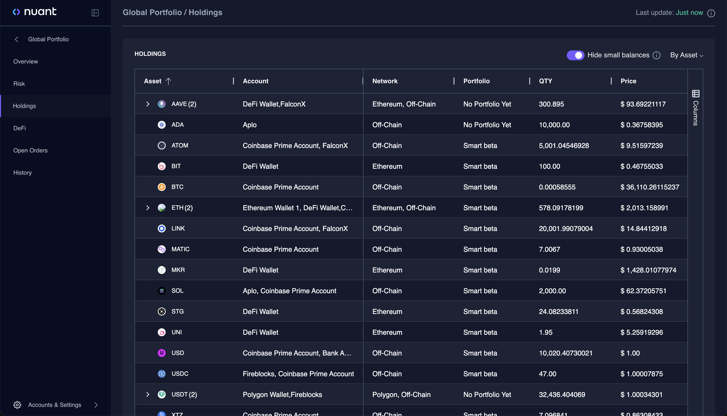 Nuant ist eine Portfolio- und Risikomanagement-Plattform, die speziell für Fachleute entwickelt wurde, um das Risiko ihrer digitalen Vermögenswerte zu überwachen und zu bewerten.
