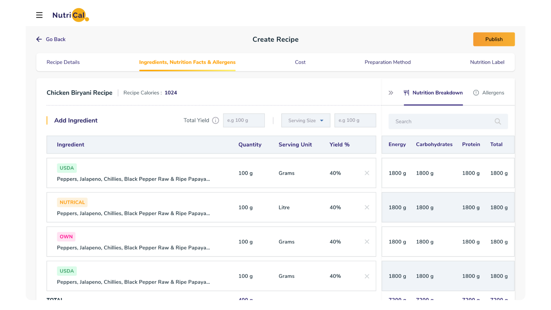 nutraCoster ist ein leistungsstarkes Werkzeug zur Analyse von Rezepten und Formeln. Es ermöglicht Ihnen, die Nährwerte, Materialkosten, Arbeitskosten, Verpackungskosten und Gemeinkosten präzise zu berechnen.