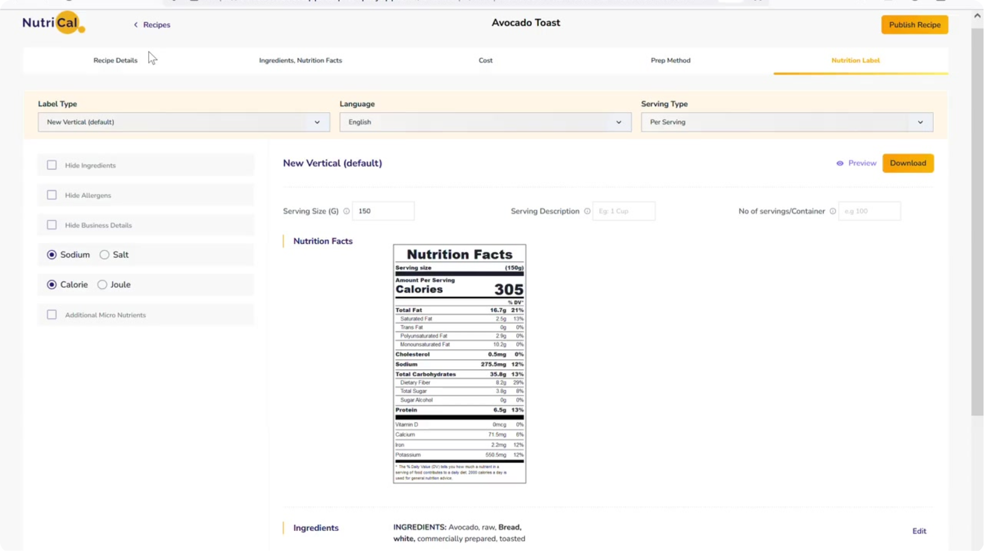Food Label Maker ist eine einfache, benutzerfreundliche, KI-gestützte Software zur Erstellung von Nährwert- und Ergänzungsetiketten für Rezeptverwaltung, Nährwertanalyse und rechtskonforme Nährwertangaben. Die Software ist für Lebensmittelhersteller, Restaurants, Catering-Unternehmen sowie Ernährungs- und Fitnessfachleute konzipiert. Mit einer von der USDA genehmigten Datenbank von mehr als 500.000 Zutaten erstellt Food Label Maker Lebensmitteletiketten, identifiziert automatisch Allergene und hebt mögliche Gesundheitsansprüche hervor.