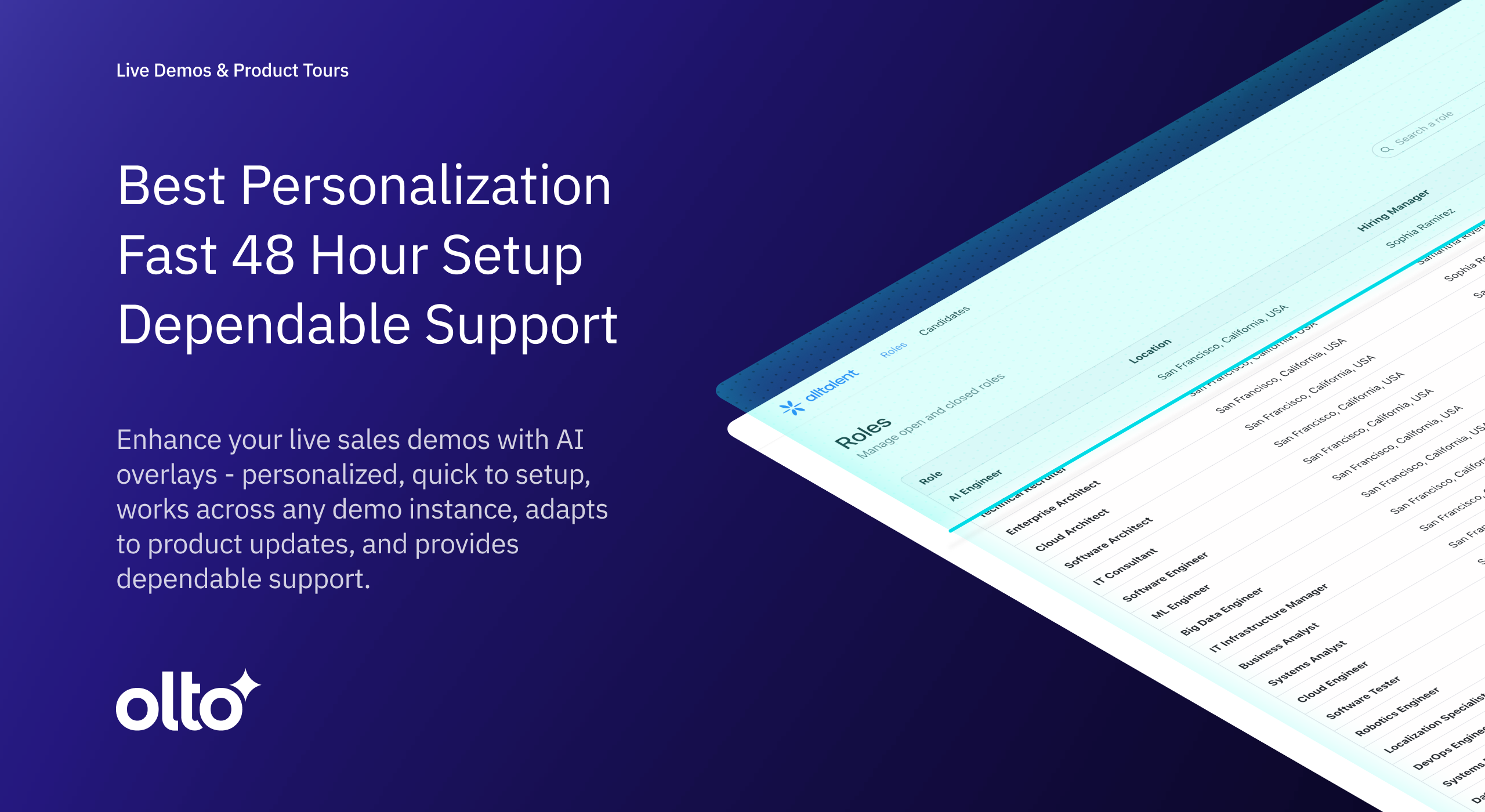 Olto verwendet modernste Technologie, um die Zeit, die unser Team benötigt, um benutzerdefinierte Datensätze für unsere Demo-Umgebungen zu erstellen, drastisch zu verkürzen. Das Olto-Team reagiert äußerst schnell, wenn wir neue Funktionen zur Lösung hinzufügen möchten. Darüber hinaus ist das Tool extrem benutzerfreundlich - ein Klick, um Olto über unsere Demo-Umgebungen zu aktivieren. Bewertung gesammelt von und auf G2.com gehostet.