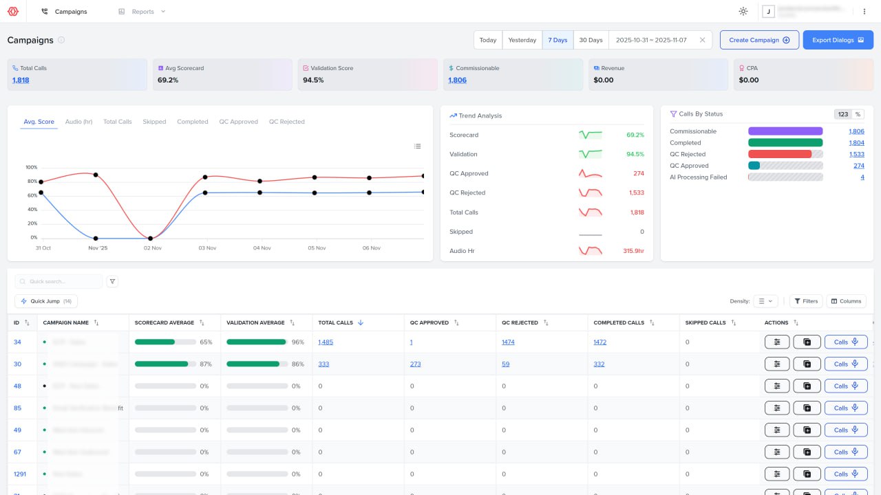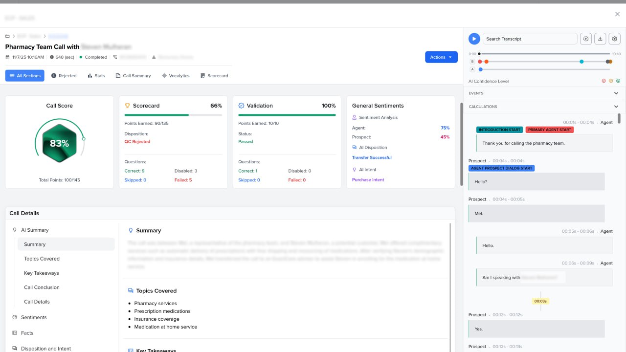 • Gesprächsanalysen, unterstützt durch Transkripte, leistungsstarke KI und automatisierte Anrufscorecards, die auf die spezifischen Geschäftsanforderungen zugeschnitten sind