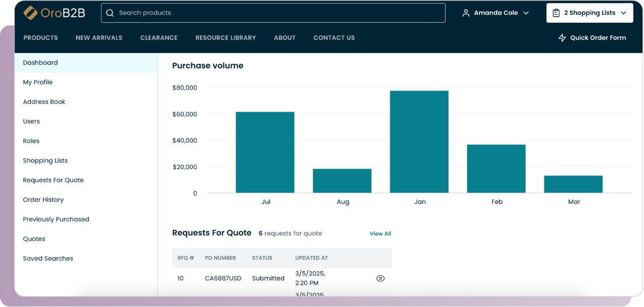 Was mir an OroCommerce wirklich gefällt, ist, wie durchdacht es für den B2B-Bereich entwickelt wurde. Im Gegensatz zu den meisten E-Commerce-Plattformen, die versuchen, B2C-Funktionalitäten umzufunktionieren, ist OroCommerce von Grund auf für echte B2B-Bedürfnisse konzipiert – Dinge wie gestufte Kontohierarchien, personalisierte Preislisten, Angebots-Workflows und Multi-Organisations-Management.