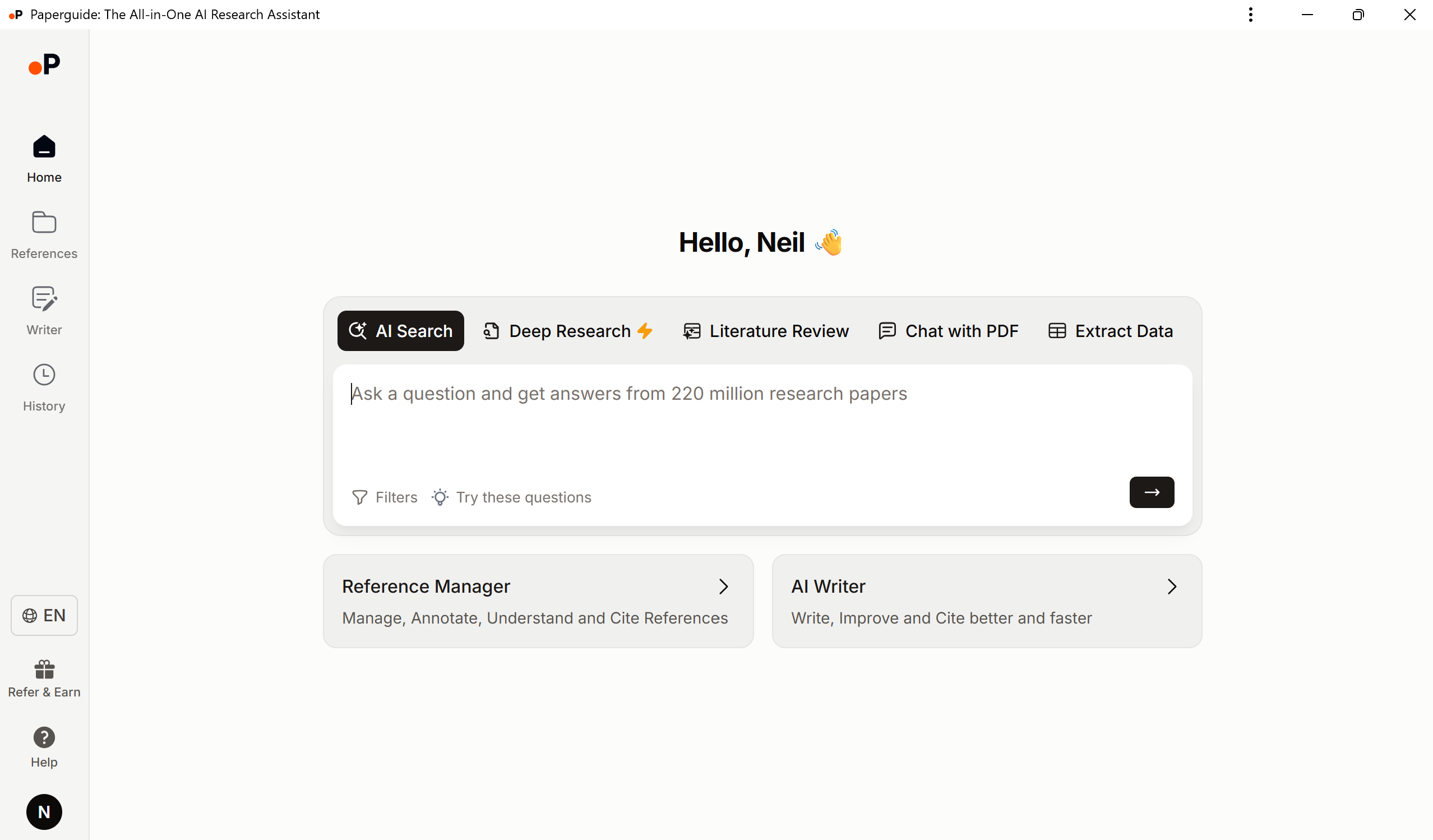 Paperguide, die Plattform, die Lesen, Schreiben und Forschungsmanagement in ein nahtloses Erlebnis vereint. Navigieren Sie durch akademische Bibliotheken mit KI-gestützter Suche, erstellen Sie schnell Zusammenfassungen und schreiben Sie überzeugende Arbeiten mit integrierten Zitierwerkzeugen. Genießen Sie eine sichere, benutzerfreundliche Oberfläche, die Ihren Forschungsablauf vereinfacht und die Produktivität steigert.