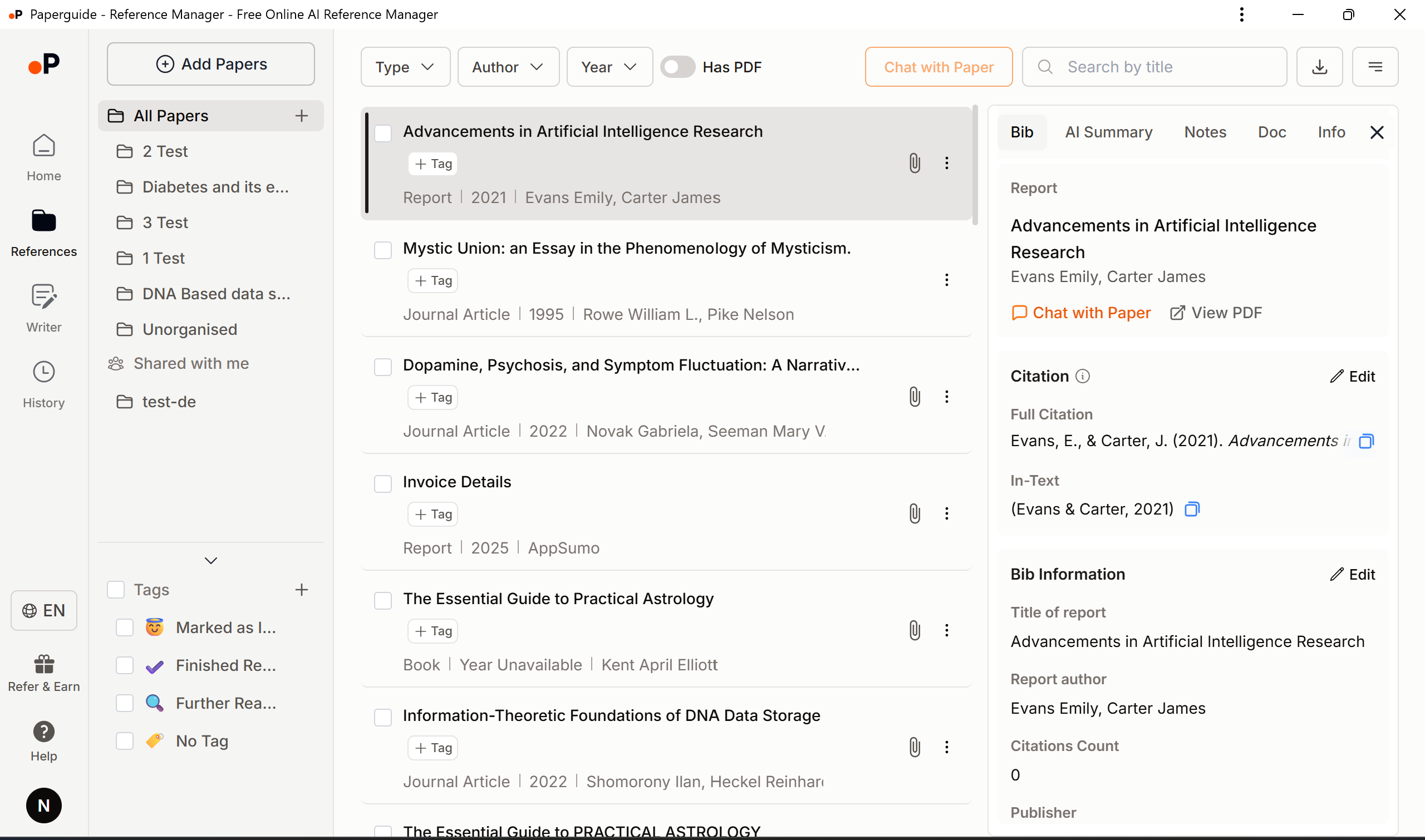 5. Referenzmanager: Verwalten und organisieren Sie nahtlos Ihre Referenzen mit Ordnern, Labels und mühelosen Importen aus verschiedenen Quellen.