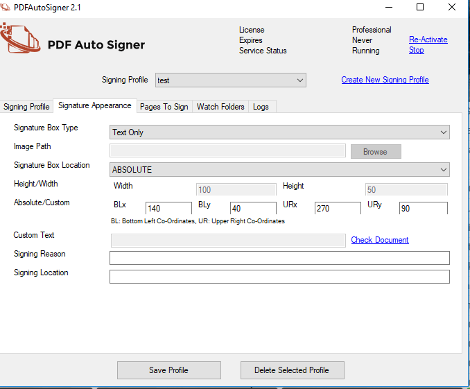 PDF Autosigner ist eine benutzerfreundliche Anwendung. Es ist nicht kompliziert zu installieren und die Lizenz zu aktivieren. Wir können leicht eine gültige Signatur in Dokumenten unterschiedlicher Größe erstellen. Wir können die Signatur überall im Dokument platzieren, wo sie benötigt wird. Es ist einfach, mehrere Dokumente gleichzeitig zu signieren. Bewertung gesammelt von und auf G2.com gehostet.