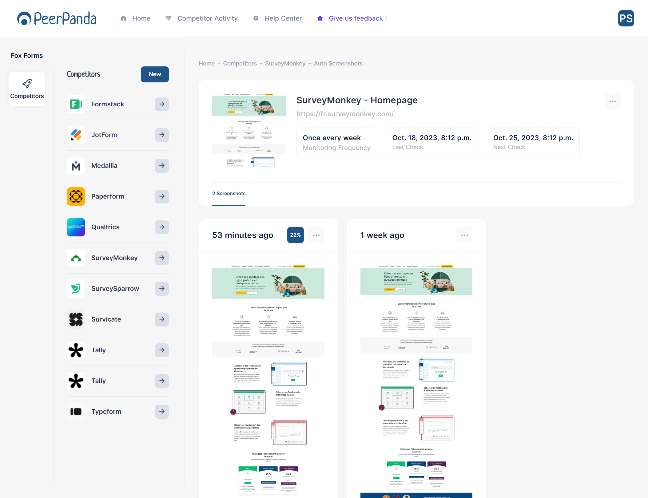 Ich benutze PeerPanda jetzt seit mehreren Monaten und es macht meine Arbeit viel einfacher. Ich habe die Wettbewerber identifiziert, die ich häufig überwachen möchte, und jede Woche erhalte ich eine klare Zusammenfassung ihrer Aktivitäten. Der Preis ist erschwinglich für die Zeit, die es mir spart. Die Synchronisierung mit Notion ist eine großartige Möglichkeit, ein Spiel zu einer Battle Card hinzuzufügen. Bewertung gesammelt von und auf G2.com gehostet.