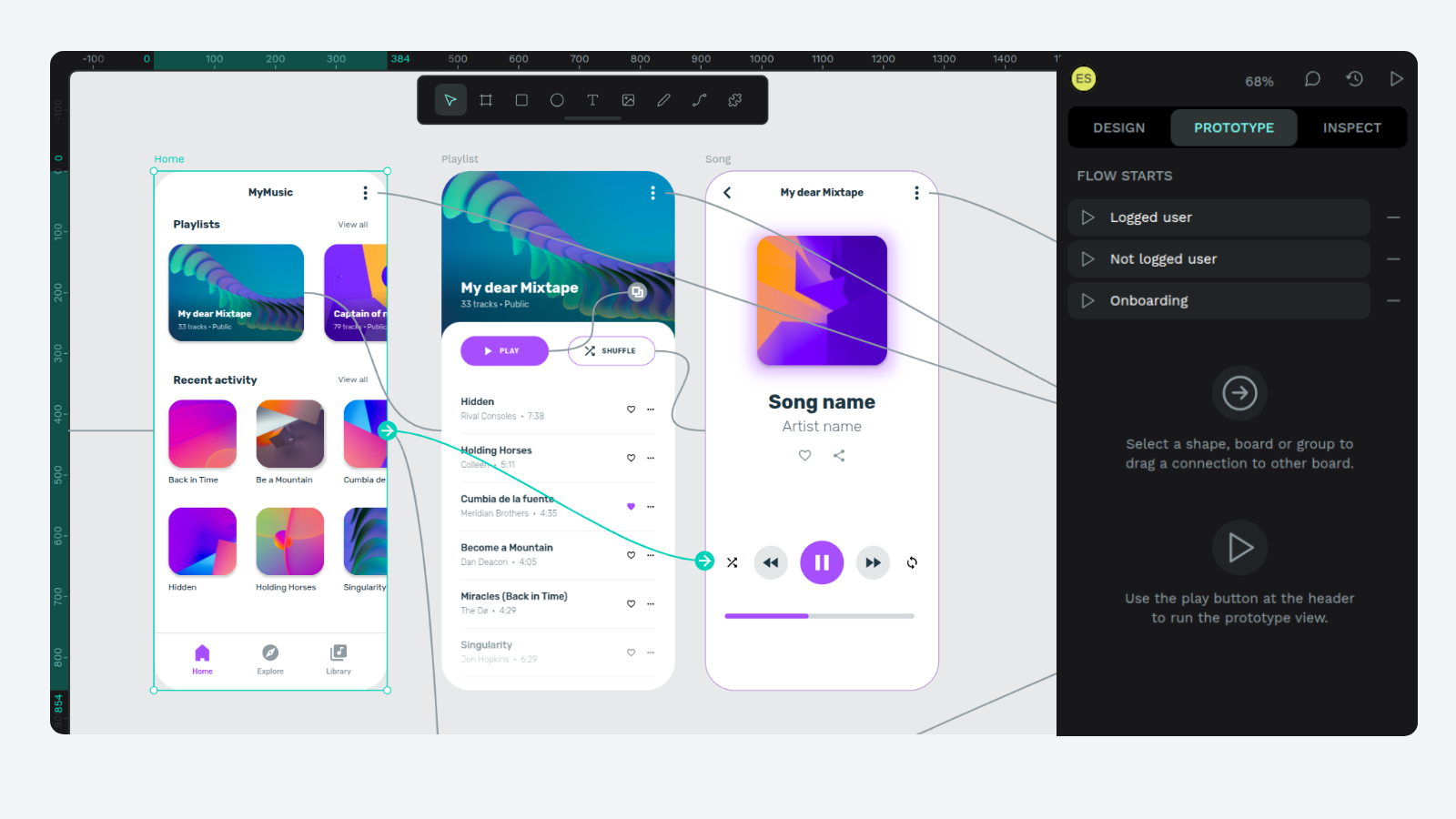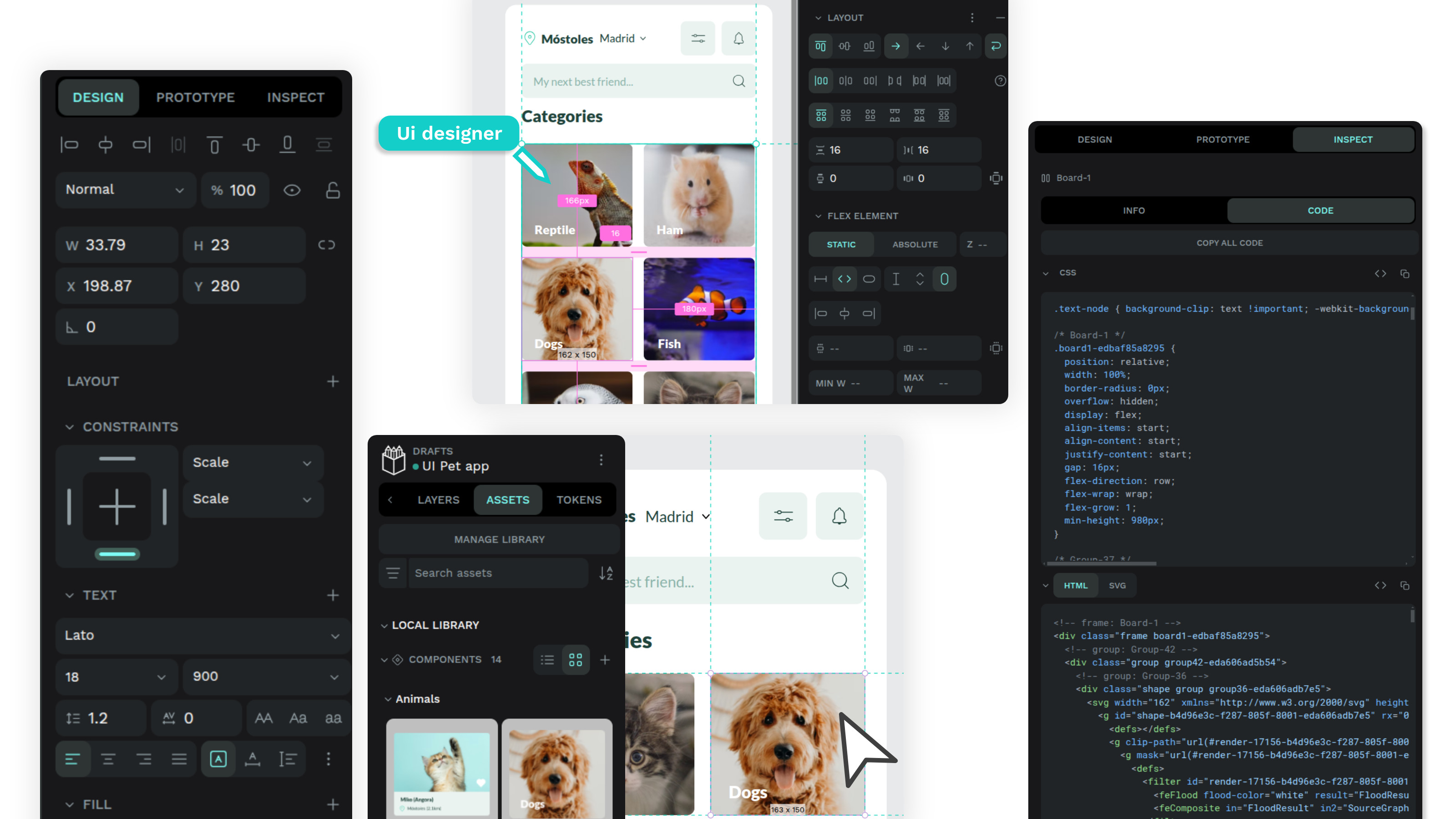 - Leistungsstarkes UI-Tool: Eine intuitive Benutzeroberfläche, um atemberaubende Visuals zu gestalten, reiche Interaktionen zu erstellen, um das Produktverhalten mit fortgeschrittenem Prototyping zu simulieren, und responsive Layouts (Grid- und Flex-Layout) basierend auf CSS-Standards zu designen. Teilen Sie sie mit Stakeholdern, präsentieren Sie Vorschläge Ihrem Team und starten Sie Benutzertests mit Ihren Designs – alles an einem Ort.