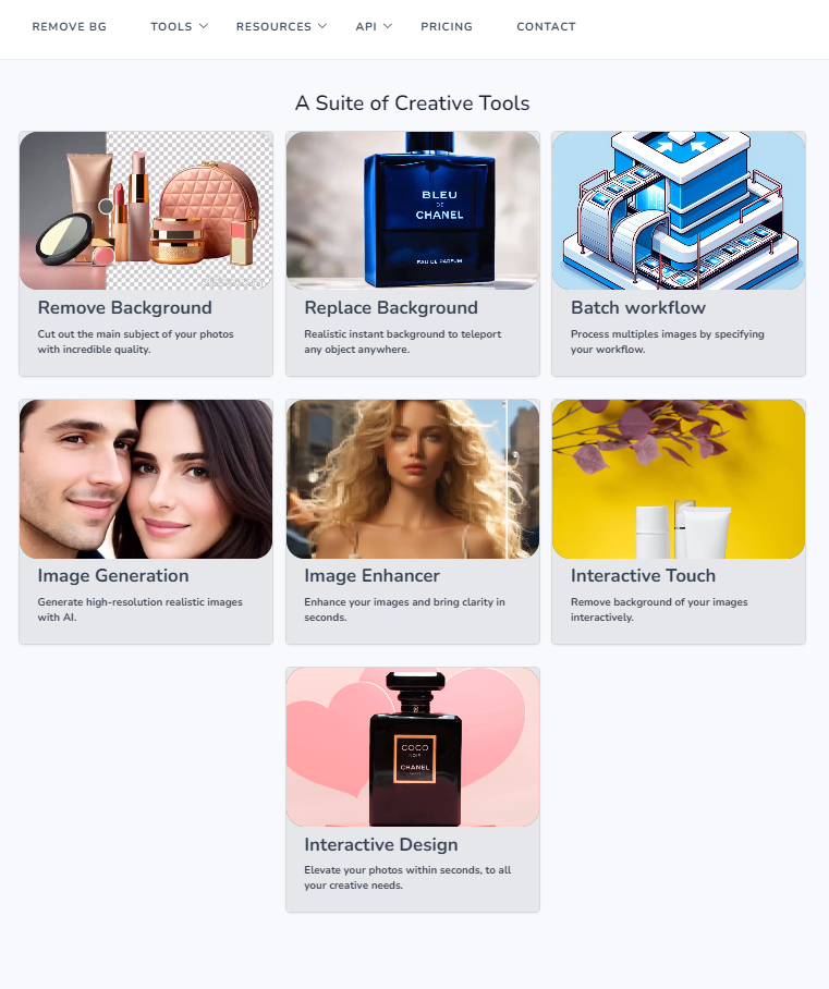 Remove bg Demo - Suite of Creative AI Processing Tools