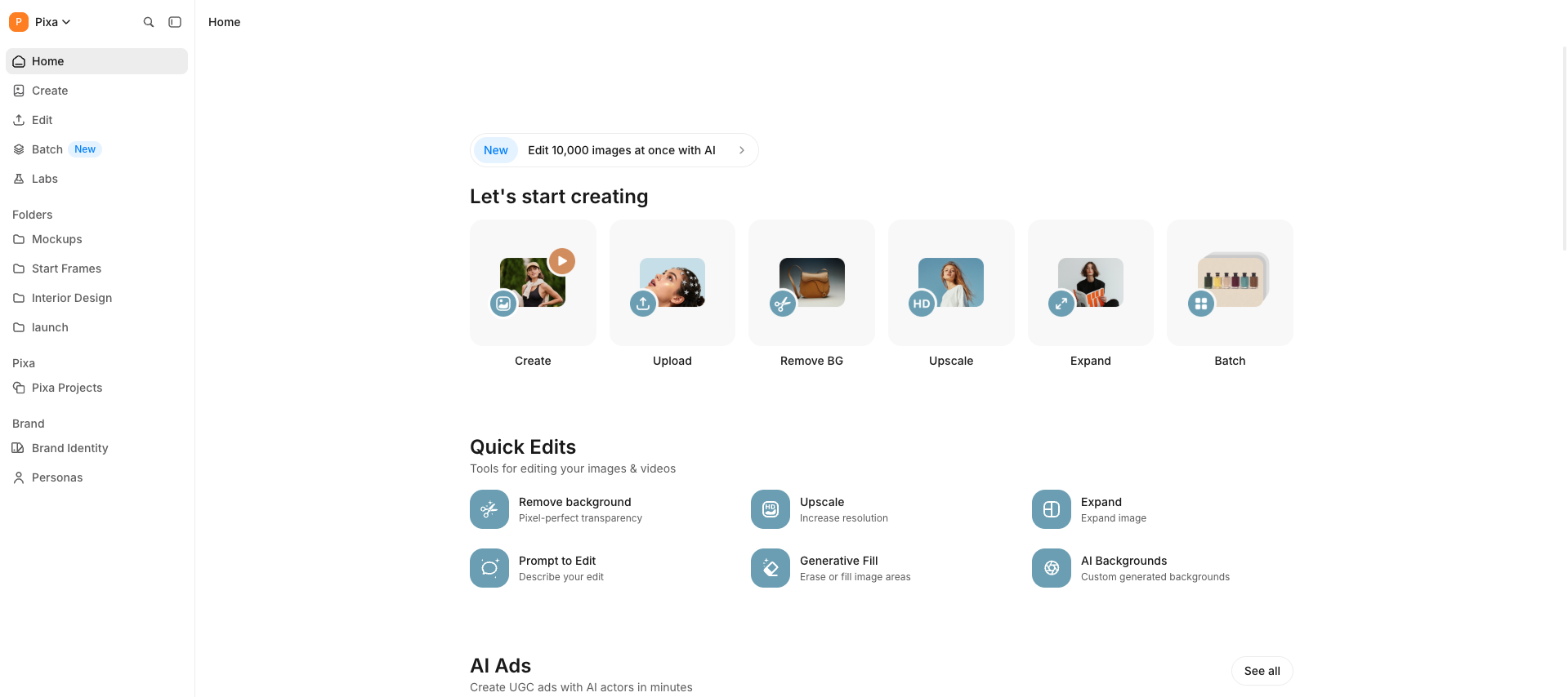 Genießen Sie magische, einmalige KI, die Hintergründe entfernen, Animationen erstellen und Bilder in (Sie haben es erraten) einem Klick skalieren kann. Sie müssen nie wieder mehrere Werkzeuge verwenden!