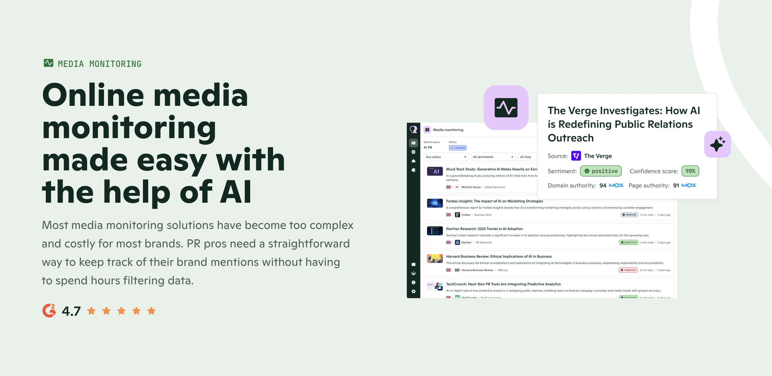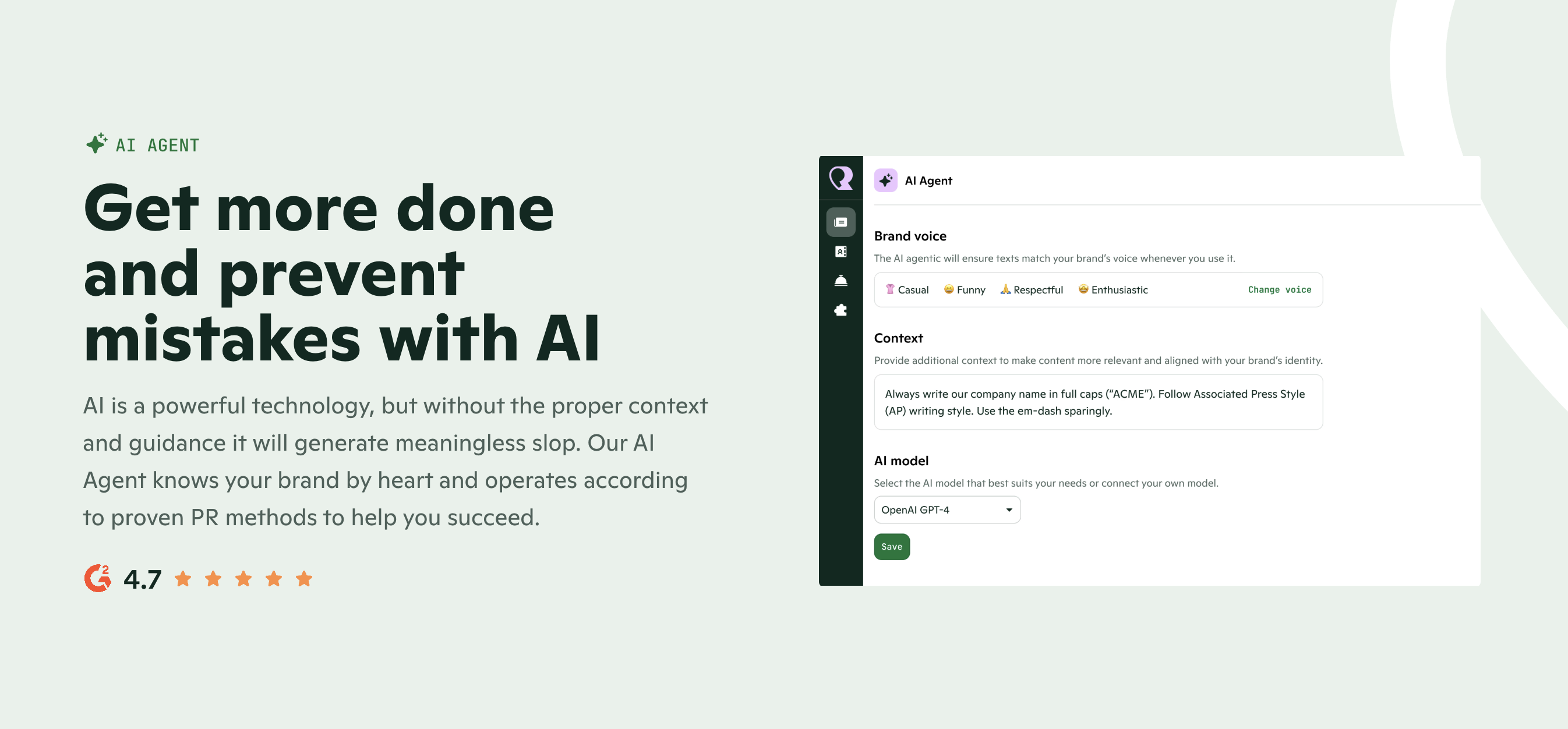 Ich schätze PR.co wirklich sehr für seinen außergewöhnlichen Kundenservice, der einen bemerkenswerten Einfluss auf unsere Erfahrung hat. Naomi, unsere Ansprechperson, ist unglaublich hilfsbereit und immer bereit, alle unsere Fragen zu beantworten, was dem Service enormen Wert verleiht. Darüber hinaus zeichnet sich das Produkt dadurch aus, dass es genau auf unsere Bedürfnisse und Markenanforderungen zugeschnitten werden kann. Diese Anpassung stellt sicher, dass PR.co nahtlos als Teil unserer Marke integriert wird, ohne das Gefühl eines externen Drittanbietersystems zu vermitteln. Die Benutzeroberfläche ist nicht nur professionell und sauber, sondern auch einfach zu bedienen und bietet hochmoderne Funktionen, ohne übermäßig kompliziert zu sein. Ich liebe es, wie gut es sich in unsere Website integriert und als Portfolio für potenzielle Kunden dient, um den Umfang unserer Arbeit und unsere Kundennews zu sehen. Die einfache anfängliche Einrichtung mit Unterstützung des PR.co-Teams erleichterte einen reibungslosen Übergang. Sie übernahmen den Großteil der Einrichtung und stimmten alles mit unseren bestehenden Systemen ab, was für uns entscheidend war. Bewertung gesammelt von und auf G2.com gehostet.
