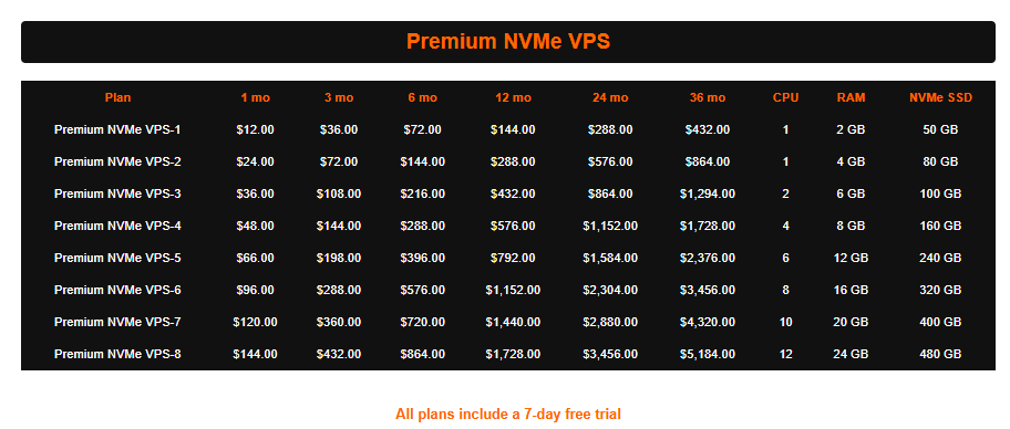 Preise bereitgestellt von Premium NVMe VPS.