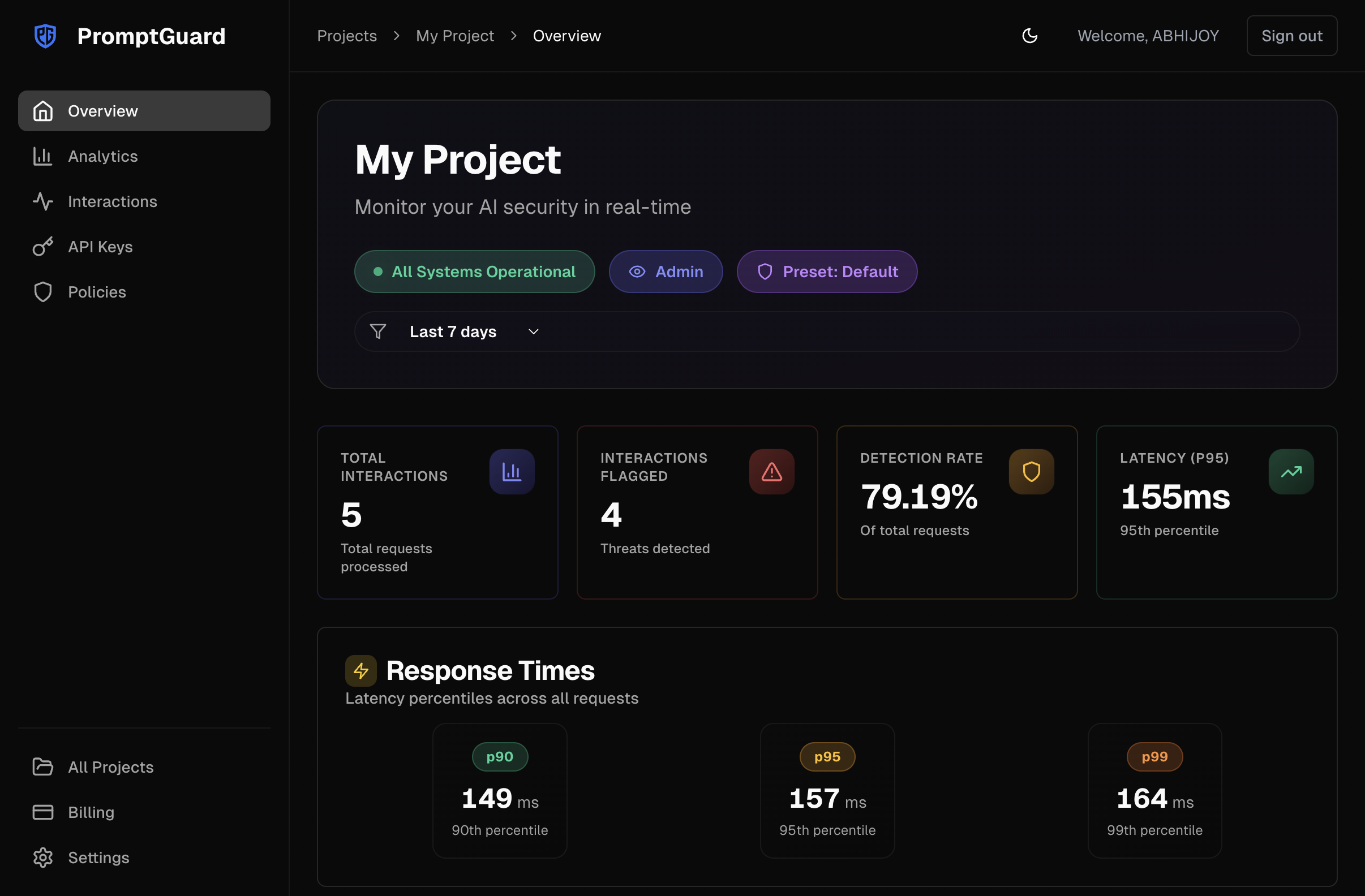 Ich schätze, wie schnell und einfach es zu benutzen ist, und vor allem, wie kostengünstig es ist – es ist nicht nötig, ein Vermögen auszugeben, um ein kleines Unternehmen abzusichern. Die Einrichtung ist unkompliziert, und es erfasst alles, was ich brauche. Die Reaktionszeit des Kundensupports ist zuverlässig, und ich kann es mit nahezu jeder LLM-Anwendung integrieren. Einmal eingerichtet, kann ich es im Grunde vergessen, aber ich habe dennoch die Flexibilität, seine Leistung so oft zu überwachen, wie ich möchte, und die Richtlinien an die Bedürfnisse meiner Organisation anzupassen. Bewertung gesammelt von und auf G2.com gehostet.