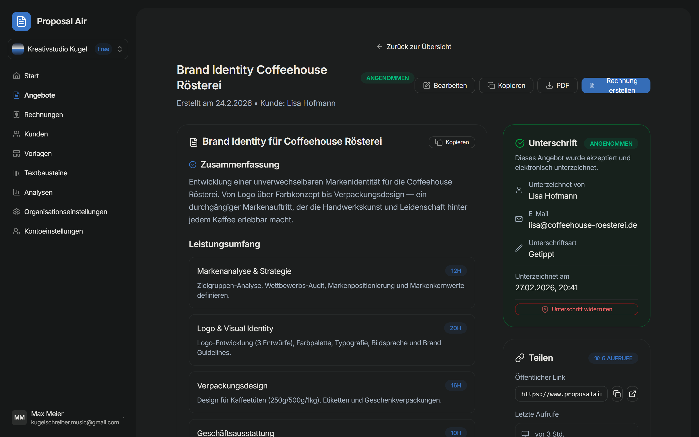 GetAccept ist eine All-in-One-Lösung für elektronische Signaturen, Vertragsmanagement, Angebotserstellung, Verwaltung von Verkaufsmaterialien, Dokumentenverfolgung und Akquise. Genutzt von Vertriebs-, HR-, Kundenerfolgs- und Entwicklungsteams; persönliche Videonachrichten, Live-Chat und Analysen sind beliebte Funktionen.
