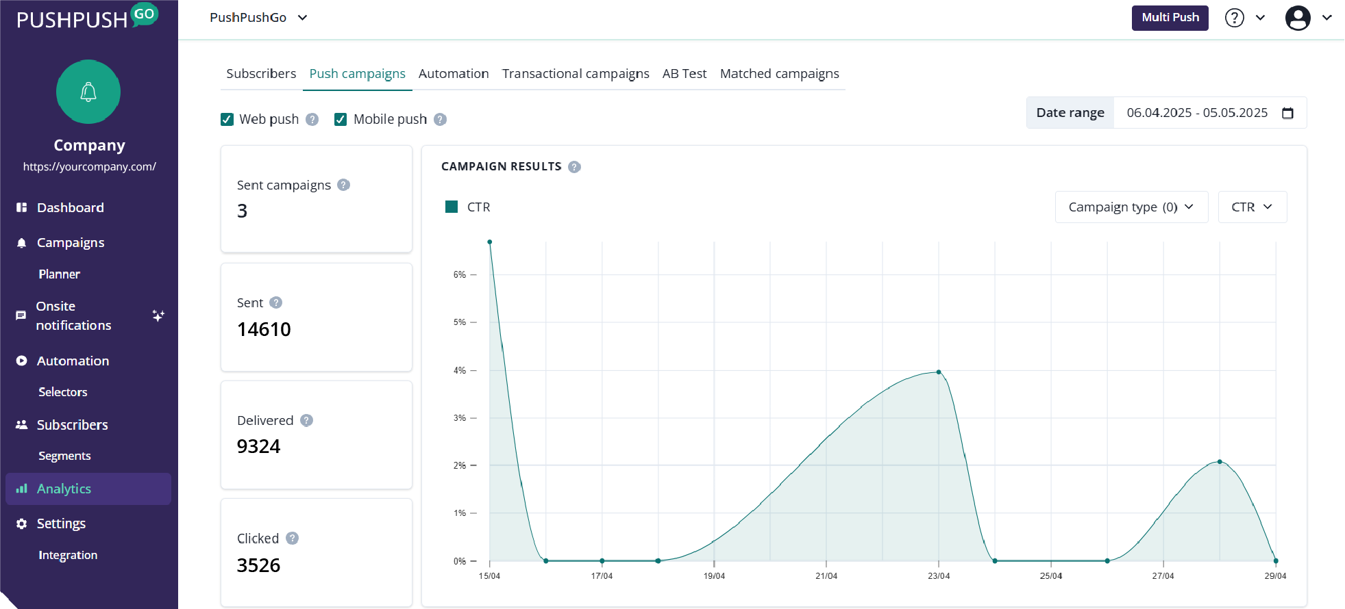 Track and analyze the results of your push campaigns and automation scenarios. Find out more insights about your subscribers.