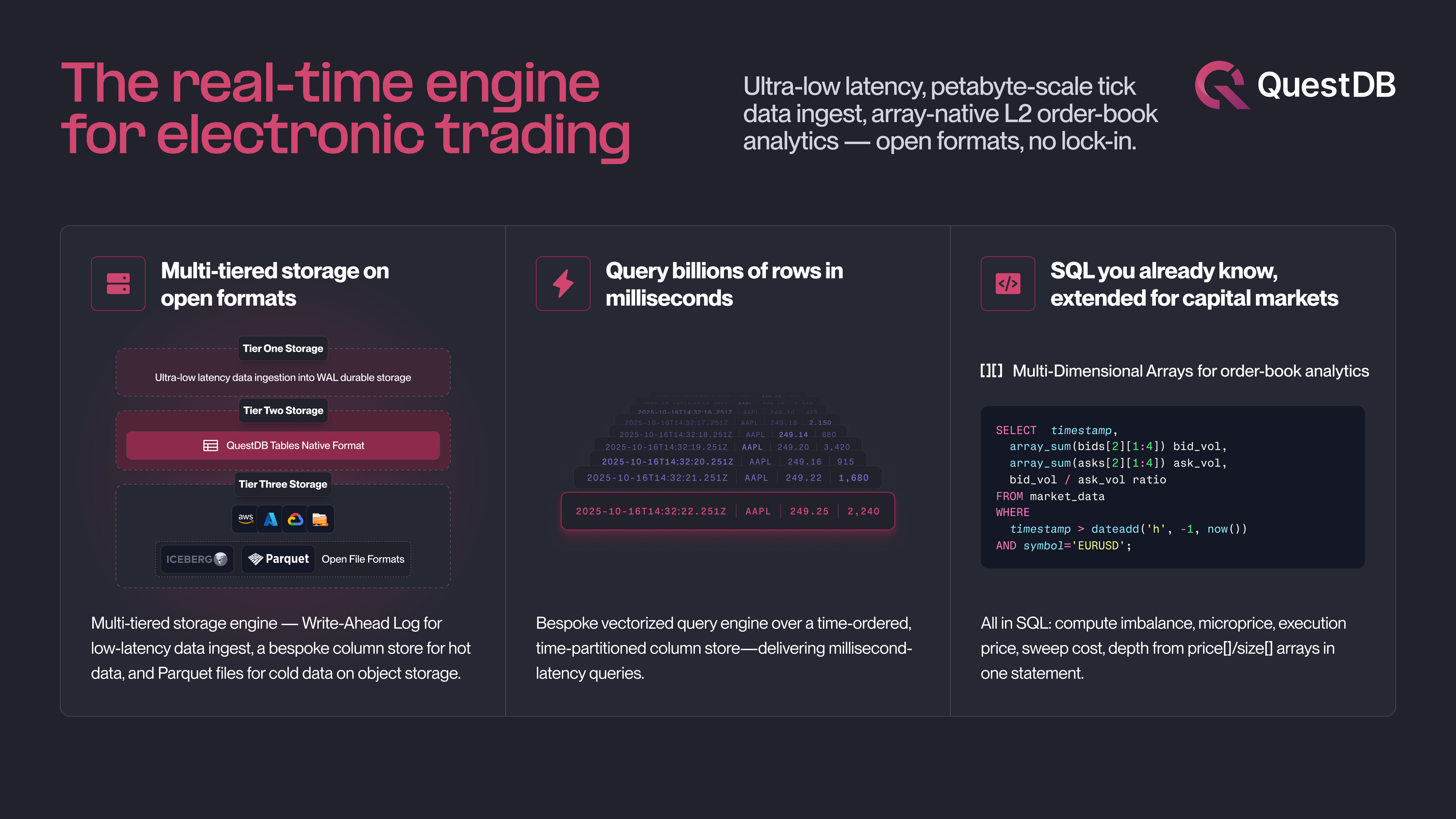Die Leistung ist extrem hoch, und sie haben kürzlich Statistiken und fensterbasierte Funktionen hinzugefügt, die es sehr einfach machen, Trends direkt in SQL zu berechnen. Ihr Support-Team ist sehr reaktionsschnell und kompetent und eine absolute Freude, mit ihnen zu arbeiten. Quest ist ebenfalls sehr stabil. Bewertung gesammelt von und auf G2.com gehostet.