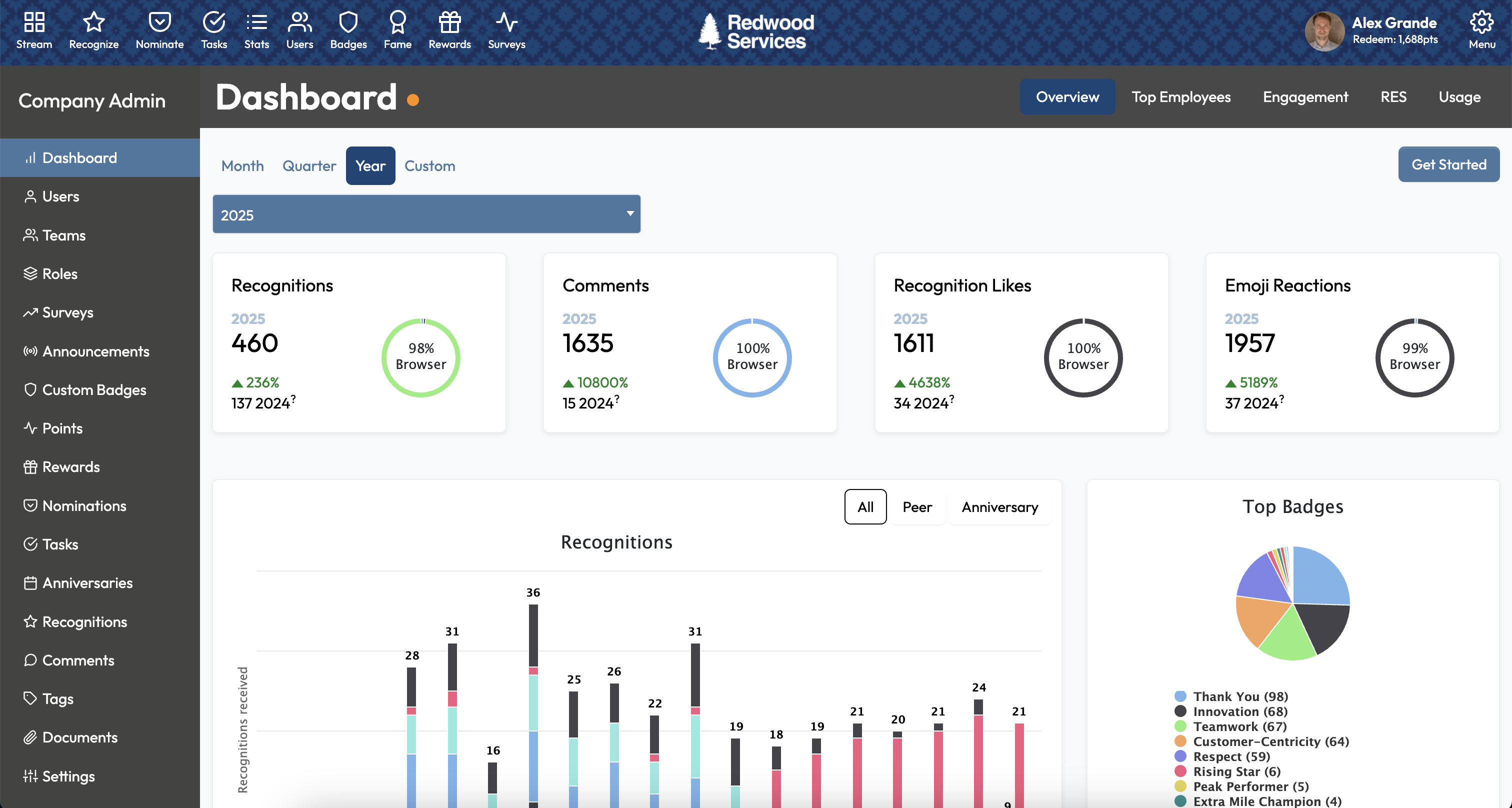 Recognize ist ein Anbieter von Mitarbeiteranerkennungs- und Belohnungssystemen für Unternehmen, die es leid sind, Tabellenkalkulationen und E-Mails zu verwenden, um das Anerkennungsprogramm ihrer verteilten Belegschaft zu verwalten.
