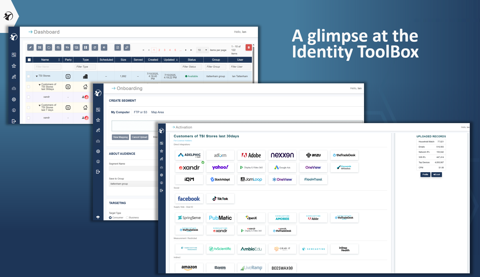 - Onboarden und aktivieren Sie CRM-Zielgruppen mit 2,3× höheren Match-Raten in großen DSPs und 3× schnellerer Aktivierung im Vergleich zu cookie-abhängigen Onboardern.