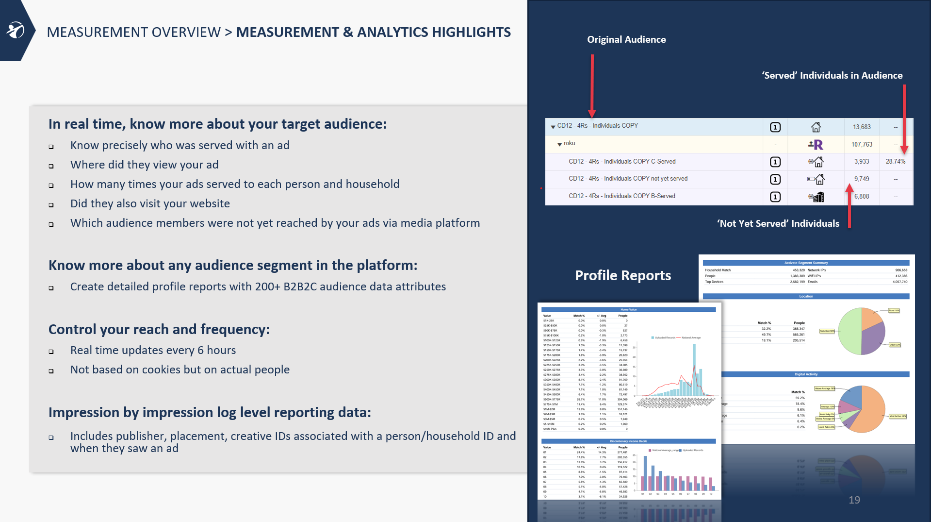 - Deduplizieren Sie Reichweite, Frequenz und Lift über reale Haushalte hinweg