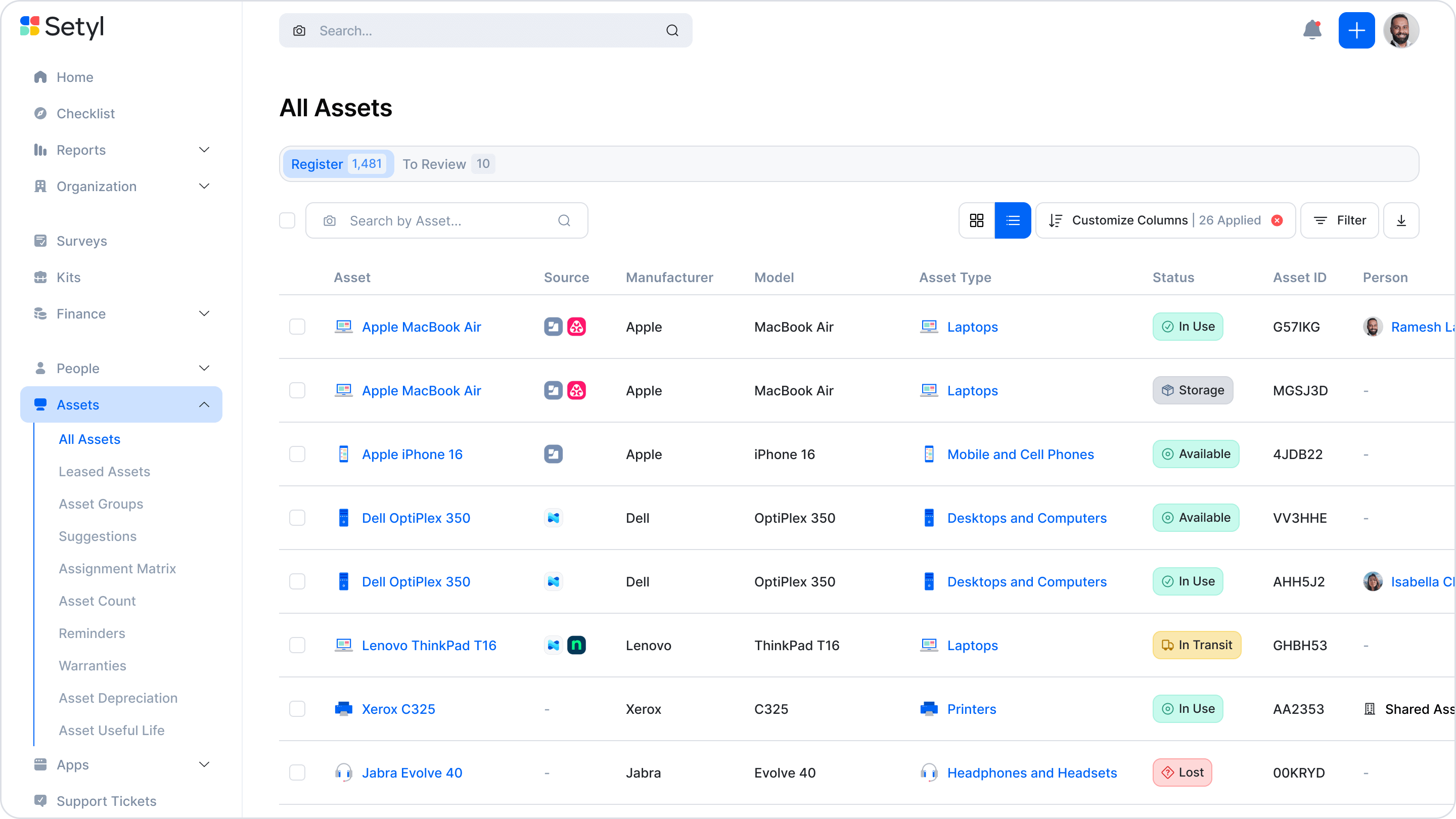 Setyl ist eine cloudbasierte IT-Asset- und Lizenzmanagement-Plattform (ITAM), die sich mit über 100 Integrationen in Ihre bestehenden IT-Systeme einbindet.