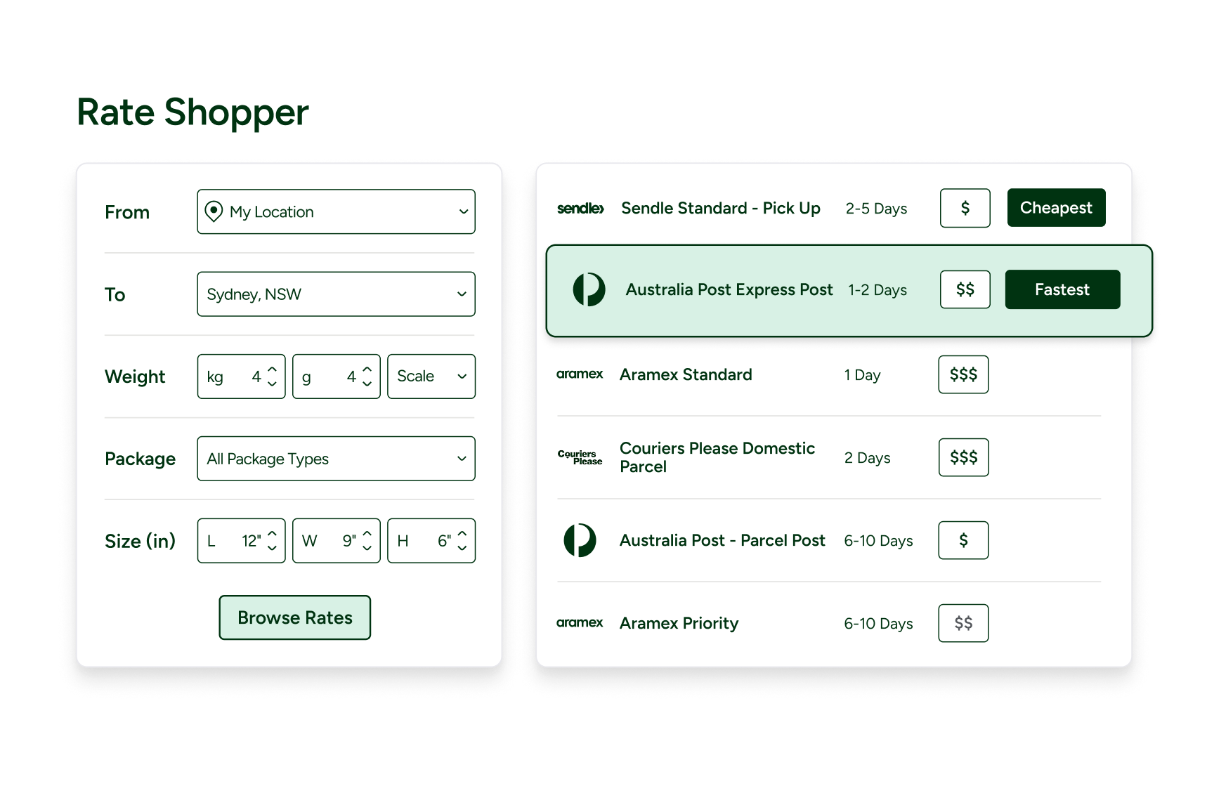 Multi-Carrier-Integrationen: Greifen Sie auf über 400 E-Commerce- und Versanddienstleister-Verbindungen zu, einschließlich USPS, UPS, FedEx und DHL, für den nationalen und internationalen Versand.
