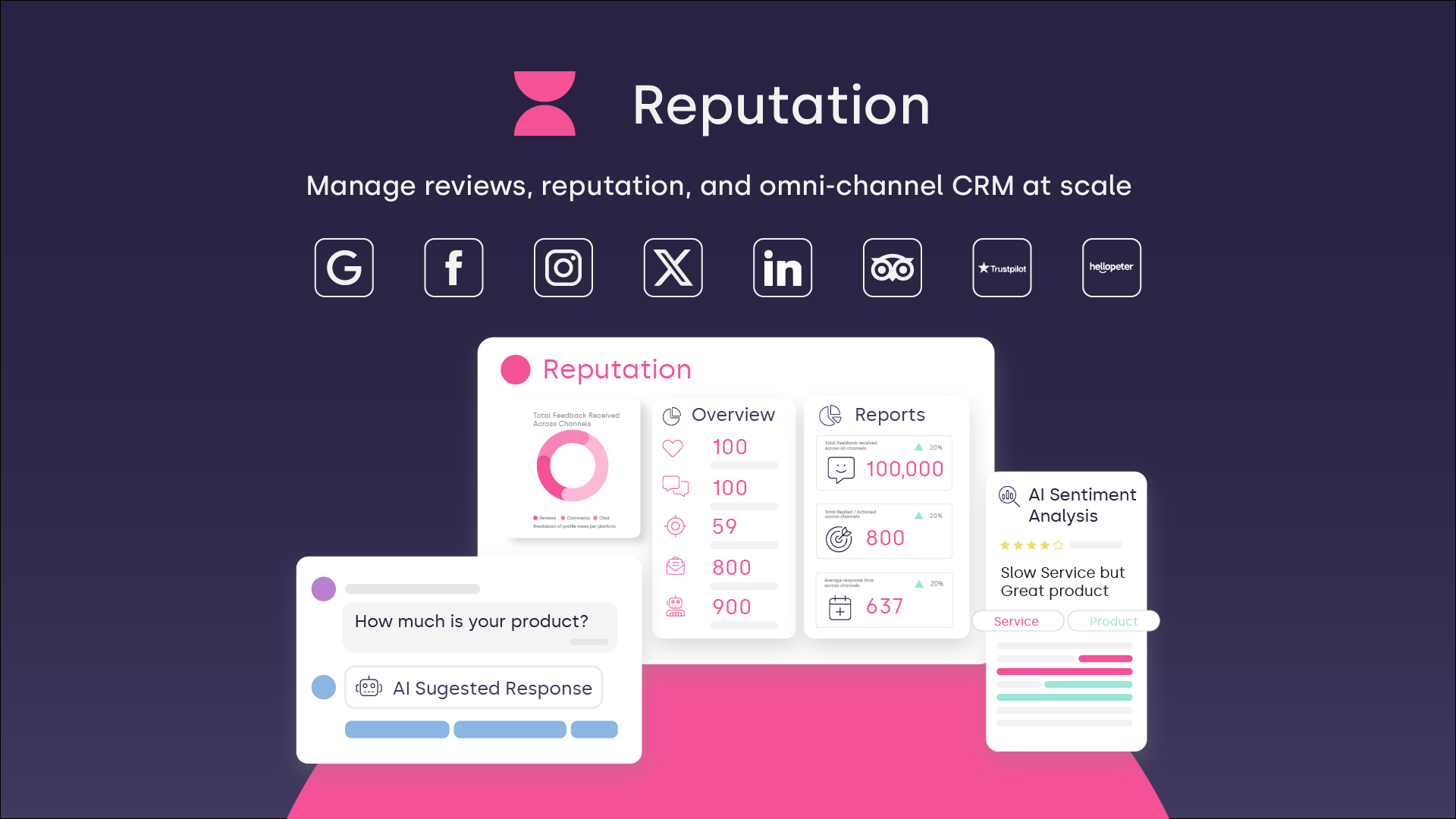 Diese Plattform deckt wirklich alles ab mit ihren umfassenden Funktionen, einschließlich Listings-Management, Listening, KI-gestütztem Omni-Channel-Reputation-CRM, lokaler Inhaltsplanung, Buchungen und AdTech.