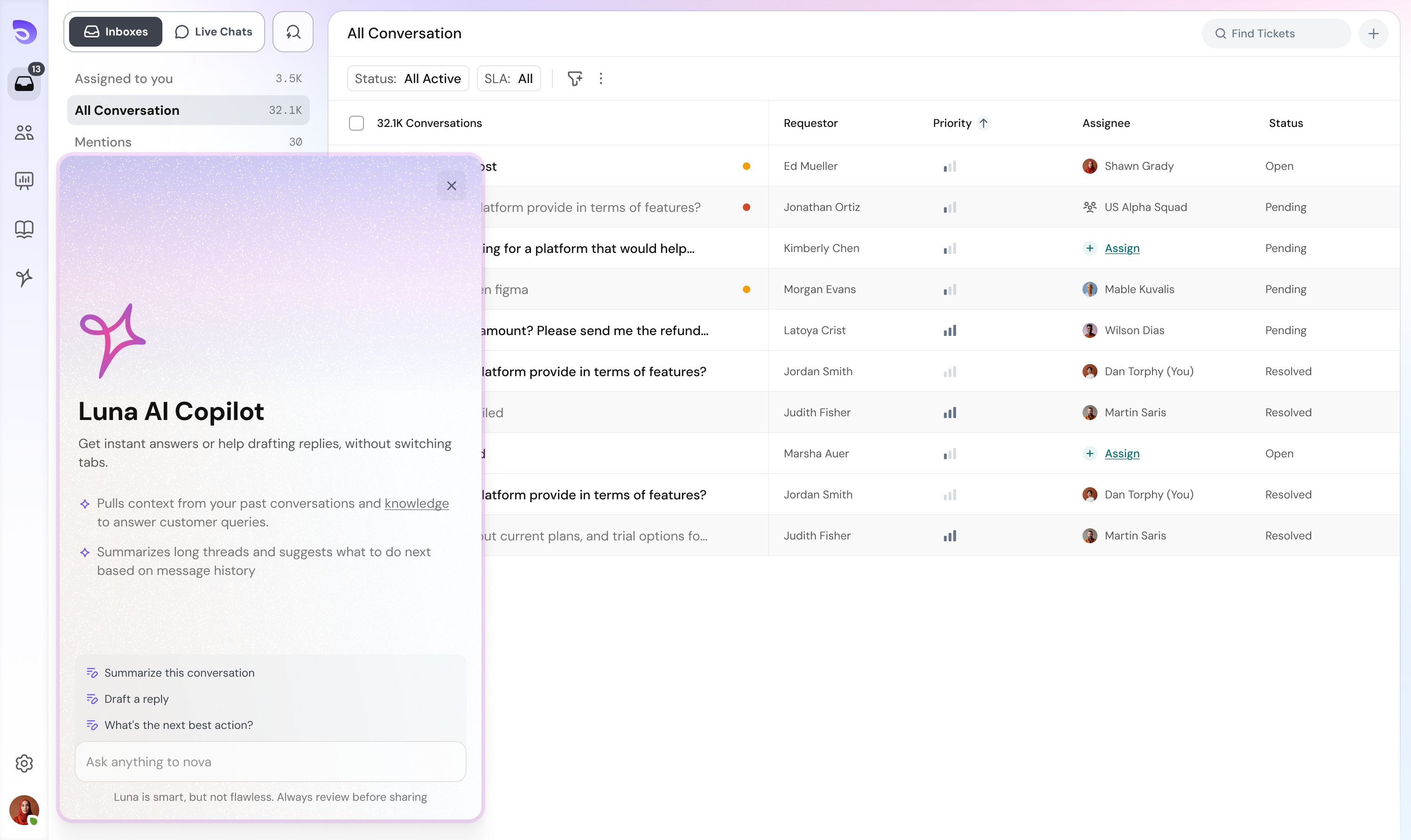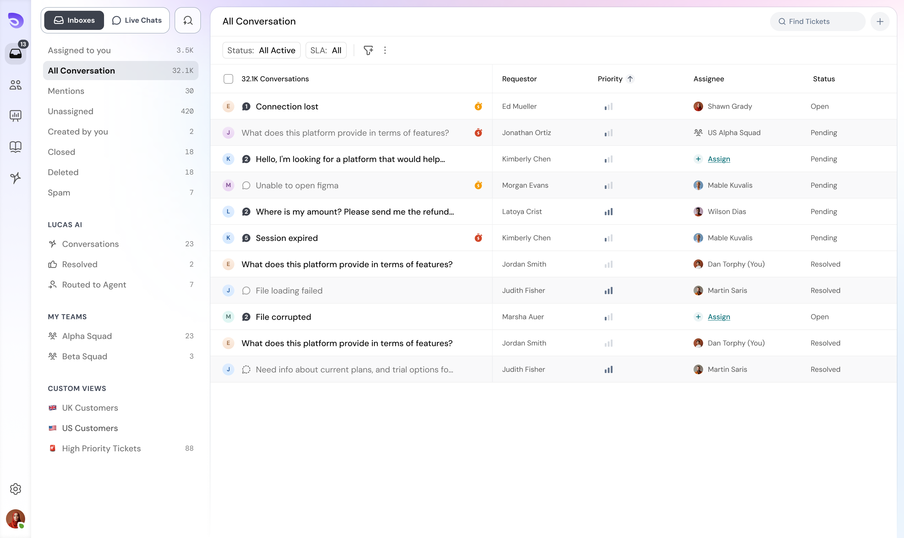 Zoho Desk zieht alle Ihre Kundeninteraktionen aus verschiedenen Kanälen in eine einzige, übersichtliche Oberfläche. Sie können dann nahtlos diese Gespräche fortsetzen und Kunden problemlos helfen.