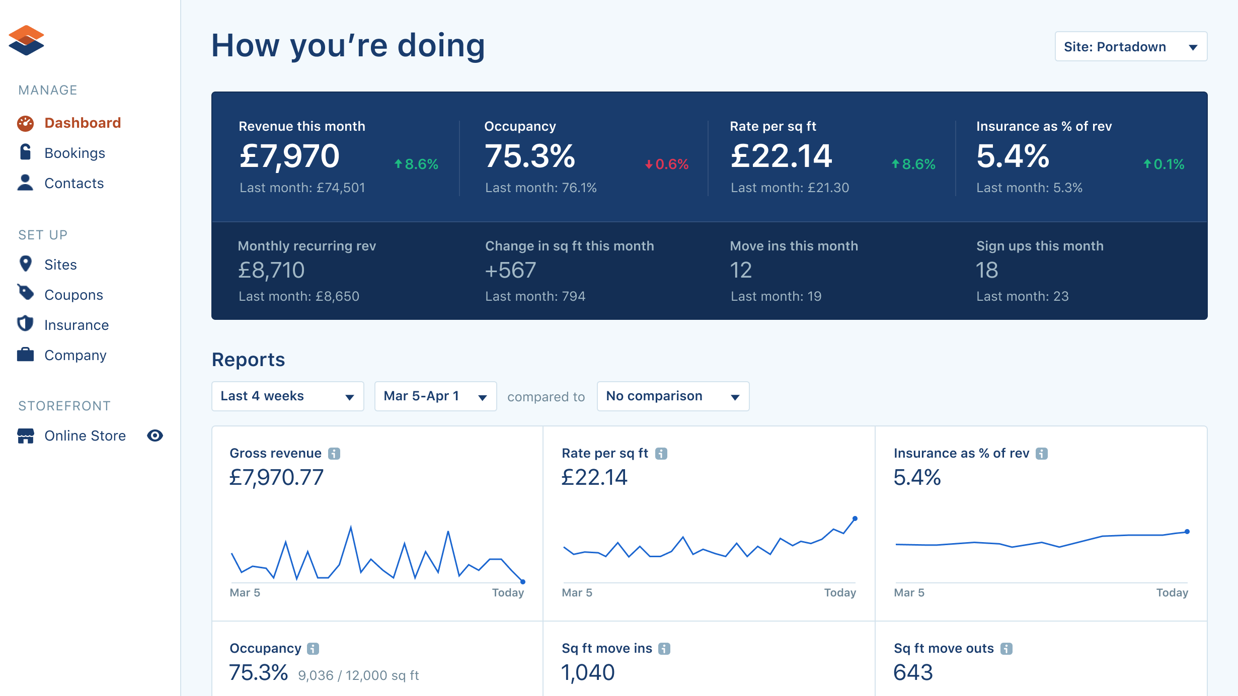 Storeganise unterstützt Betreiber von Self-Storage-Anlagen mit einem Standort oder mehreren Standorten, bietet über 30 Integrationen und beinhaltet eine flexible offene API für benutzerdefinierte Workflows und Automatisierungen. Betreiber erhalten vollständige Transparenz durch Echtzeit-Dashboards und Berichte, während Mieter eine nahtlose Online-Erfahrung genießen, um ihre Einheiten zu buchen, zu bezahlen und zu verwalten.