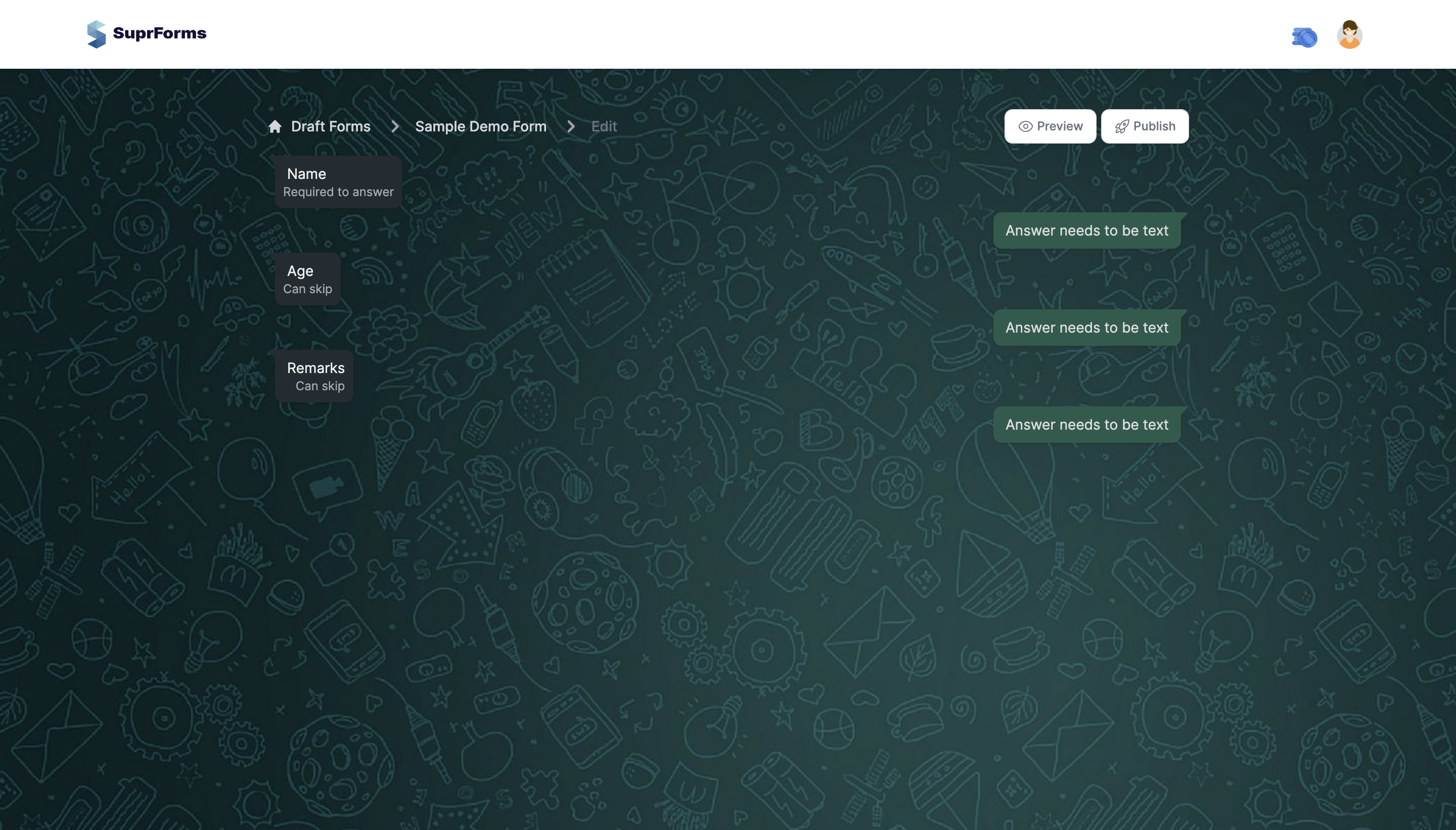 Beantworten Sie einige Fragen, um der SuprForms-Community zu helfen