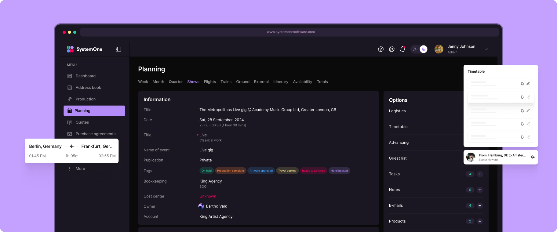 SystemOne gibt es schon seit Jahren. Die Preise sind erschwinglich und es bietet so viele Funktionen zur Verwaltung von Künstlerbuchungen online und offline. Ich benutze die Software wirklich gerne, besonders nach ihrem coolen neuen Rebranding mit aktiviertem Dunkelmodus. Ich verpasse nie einen Takt, selbst wenn ich mehrere Künstler und Shows gleichzeitig verwalte. Bewertung gesammelt von und auf G2.com gehostet.