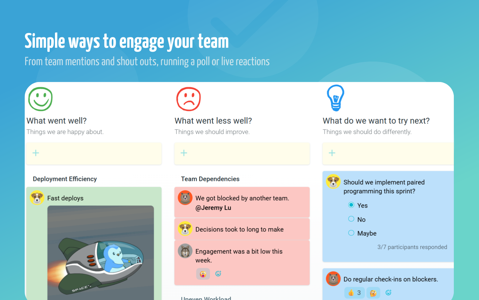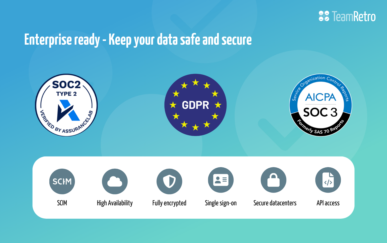 - TeamRetro bietet die Möglichkeit, alle Daten eines Kunden auf Servern in der EU zu hosten, was ein einzigartiger Pluspunkt ist.