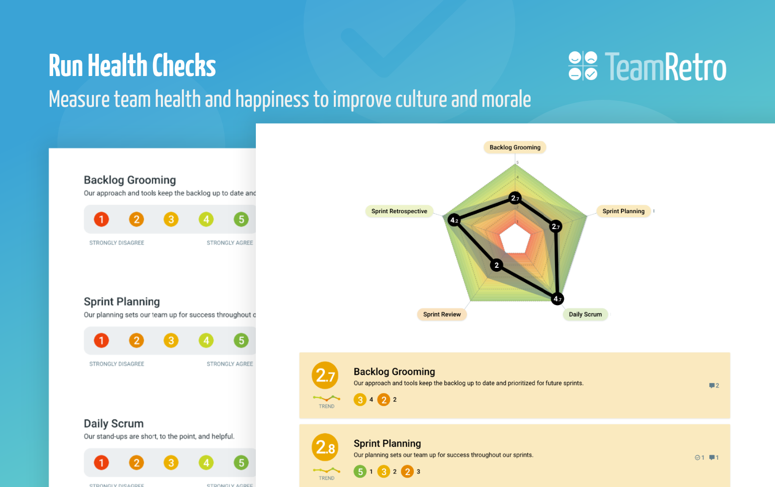 - Team-Gesundheitscheck als Teil des Retrospektiv-Tools.