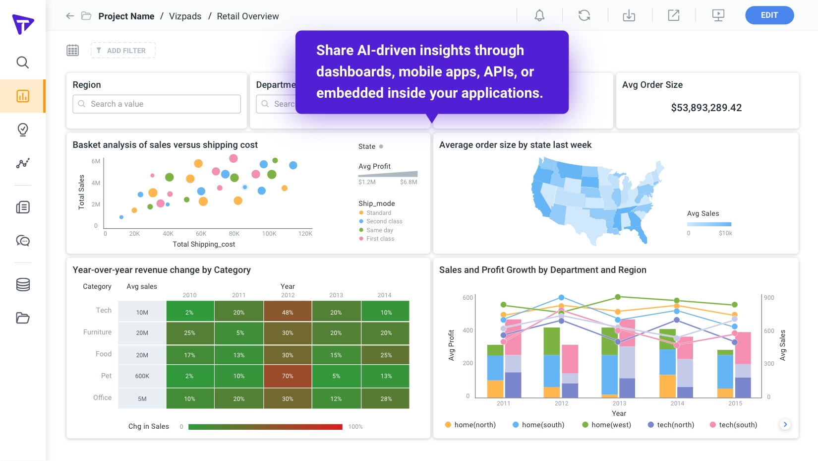 Verbindet sich mit verschiedenen Datenquellen (Ansprüche, CRM, POS, syndiziert, SAP, Snowflake, Redshift, Databricks) und unterstützt mehrere Geschäftsteams mit unterschiedlichen KPIs, Workflows und Sprachen.