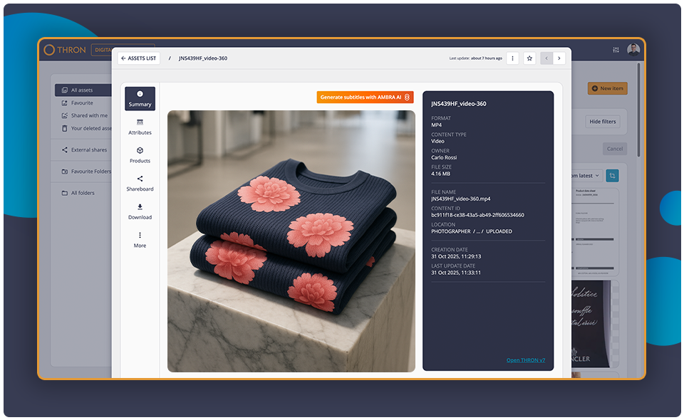 THRON ist eine äußerst dynamische DAM-Plattform, die darauf ausgelegt ist, sich an moderne und sich ständig weiterentwickelnde Arbeitsabläufe anzupassen. Das Asset-Management ist reibungslos und intuitiv, und die Fähigkeit, Bilder in verschiedenen Formaten und Auflösungen zu liefern – automatisch für jeden Kanal optimiert – ist eine ihrer bemerkenswertesten Stärken. Dies ermöglicht es Ihnen, Inhalte zu verteilen, die immer konsistent, aktuell und leistungsstark sind, ohne zusätzlichen Aufwand.