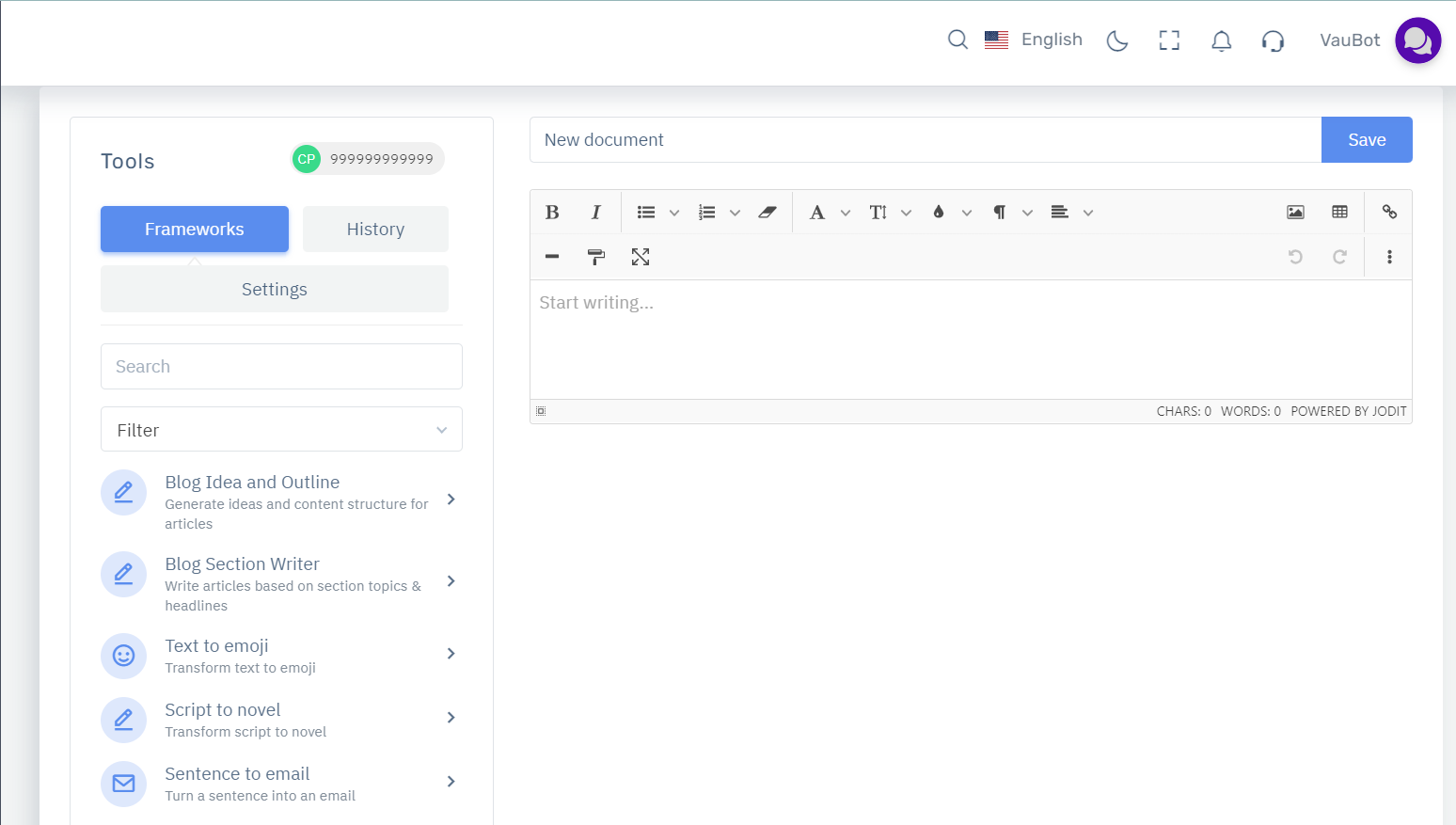Erstellen Sie Texte, die in Suchmaschinen, Anzeigen, Produktbeschreibungen, sozialen Medien, Blogs und allem anderen, was Sie benötigen, gut abschneiden. Und ta-da✨ Ihr Tag wurde viel leichter.