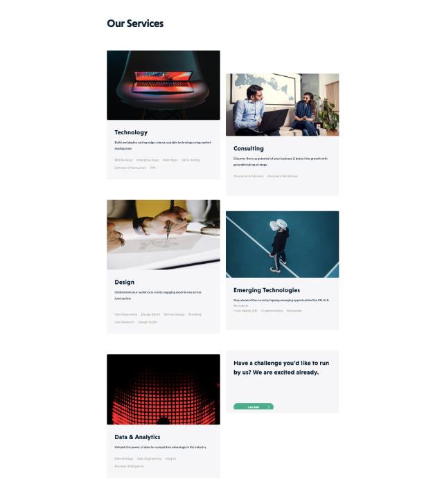 Chetu Inc. bietet eine Reihe von Fachkenntnissen, die darauf abzielen, Kunden dabei zu helfen, ihre Geschäfte in einem sich ständig verändernden Markt neu zu gestalten und neu zu erfinden.