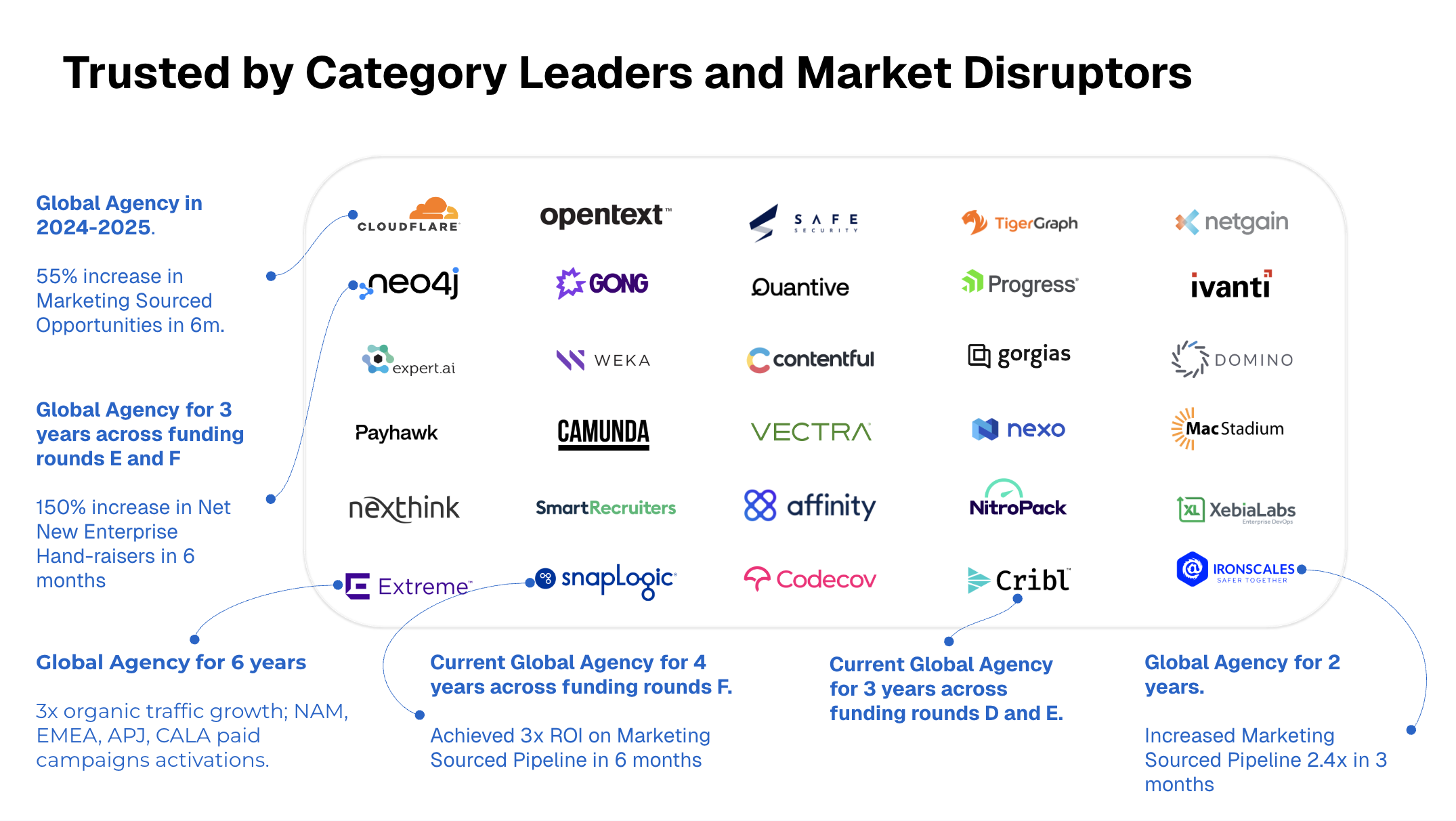 💪 Die Unternehmen, die uns vertrauen, sind unter anderem Cloudflare, Gong, Cribl, SnapLogic, Contentful, Payhawk, OpenText, Neo4j, Extreme, Progress, Ivanti, Gorgias, DominoDataLab, Safe Security, Camunda, Nexo, Ironscales, Affinity, Quanitve, Thriller TV, Scalefocus und viele mehr.