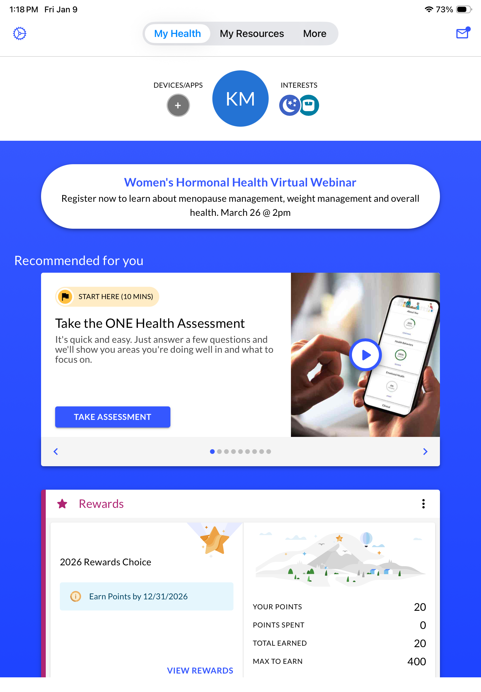 Designed to inspire action and boost participation, the WebMD ONE homepage allows participants to view their health data, interact with tools, participate in activities, sync devices, update interests and filter relevant content—all in one place. Our homepage shows trending health options to help...