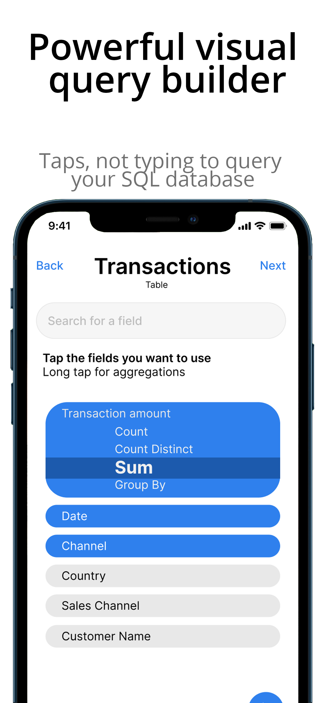 * Visuelle Abfragen mit einem Drag-and-Drop-Builder, der auf Mobilgeräten und im Web funktioniert