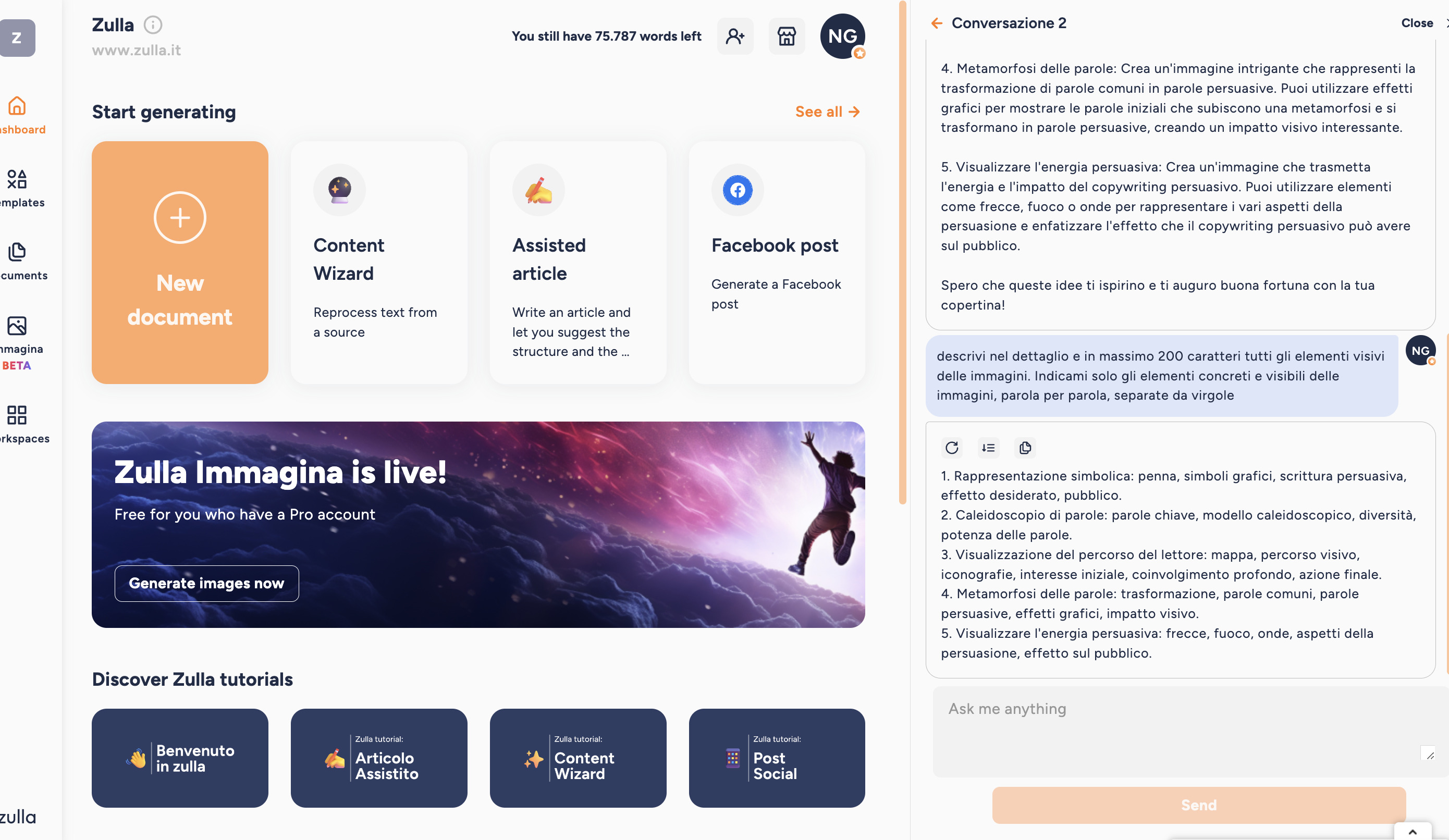Mit Zulla Immagina erstellen Sie hochwertige Bilder im Handumdrehen. Verwandeln Sie Ihre Inhalte visuell und lassen Sie jeden Pixel zählen! 🖼️