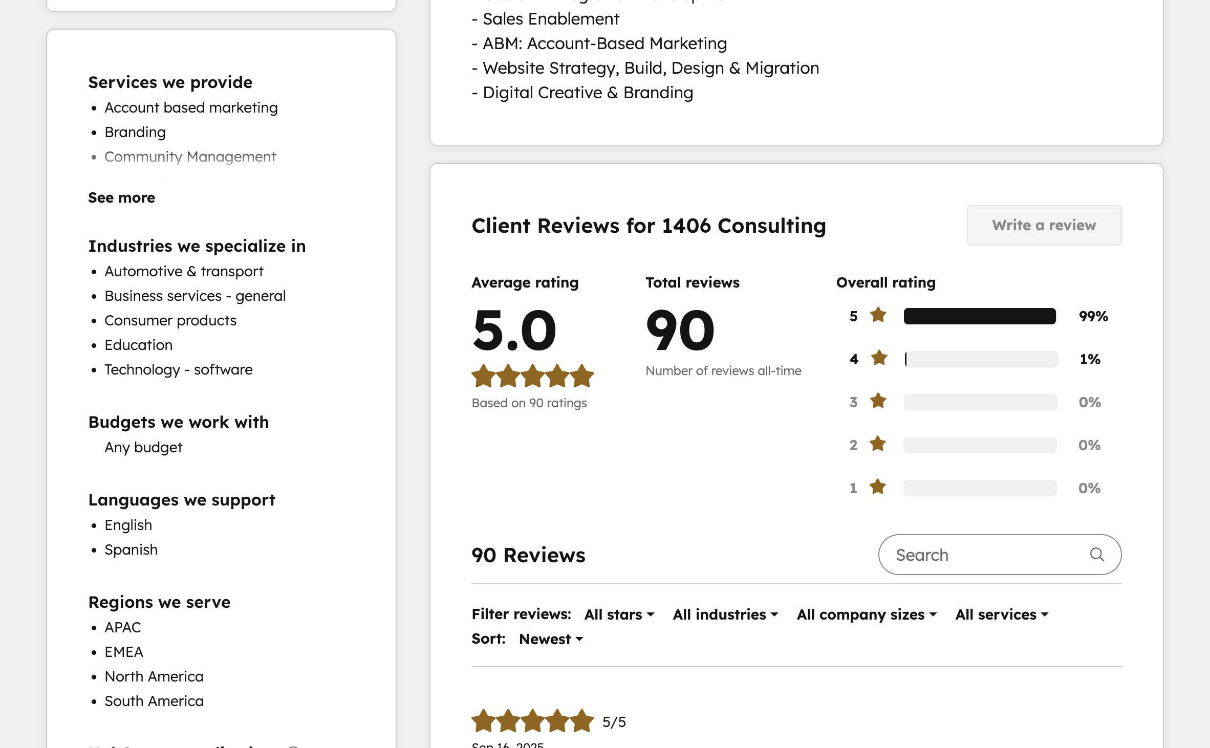 No hay suficientes reseñas de 1406 Consulting para que G2 proporcione información de compra. A continuación, se muestran algunas alternativas con más reseñas:
