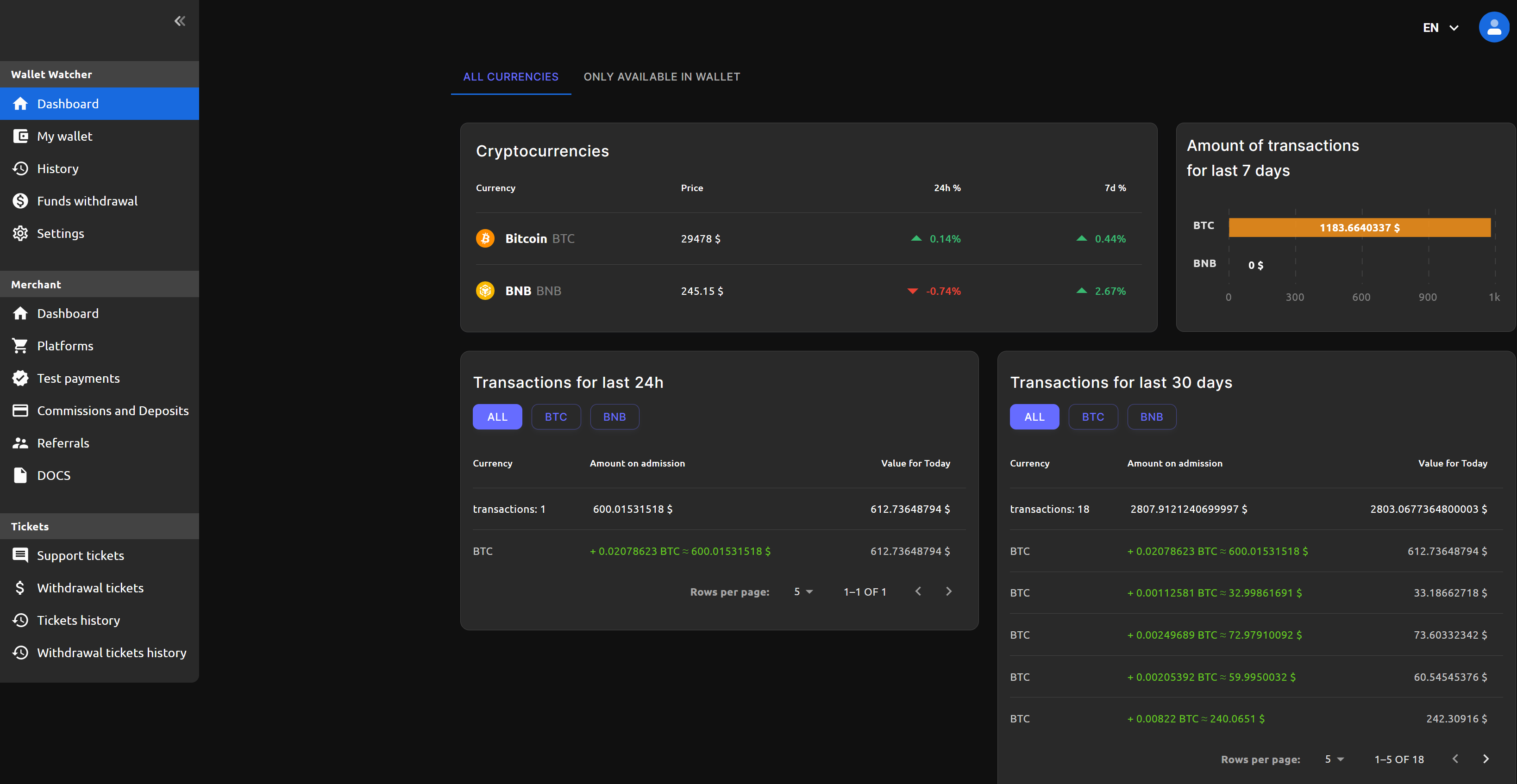 Te ayudamos a recibir pagos de cualquier persona en el mundo. En esta etapa, la plataforma admite todas las principales criptomonedas: BTC, USDT, ETH, TRX, Litecoin, Dash.