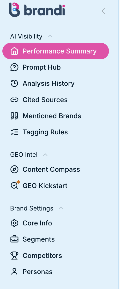 Realmente aprecio lo simplificado que es Brandi. Las nuevas herramientas a veces pueden resultar abrumadoras, pero Brandi facilita la comprensión del qué, por qué y cómo detrás de la visibilidad de la IA, dándome una comprensión clara y accionable de GEO.