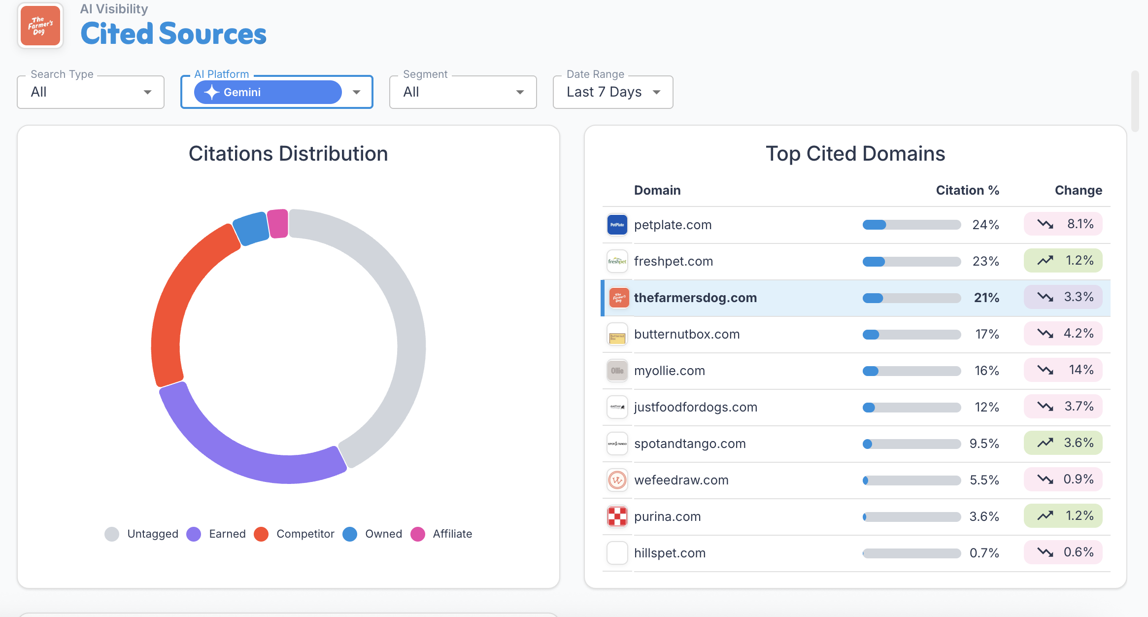 Las herramientas de inteligencia competitiva de Brandi son igualmente impresionantes. Proporcionan una perspectiva clara y basada en datos sobre la frecuencia con la que nuestros clientes y sus competidores aparecen en respuestas generadas por IA. Estos conocimientos nos permiten abordar GEO con confianza, identificar brechas de visibilidad y priorizar lo que necesita mejora.